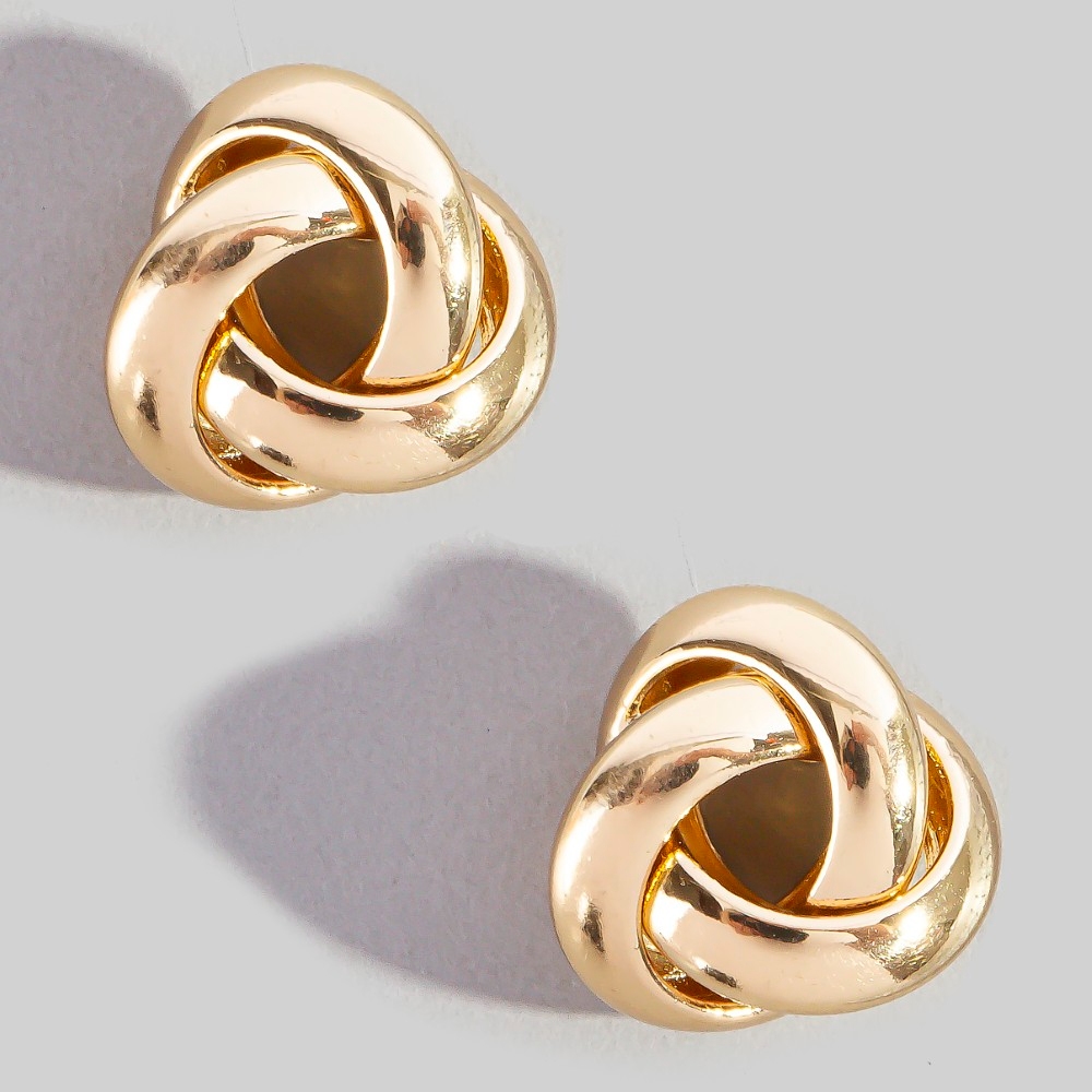 Perfectly versatile and endlessly stylish, this pair of stud earrings offers a remarkable metallic knot design. Take your style to the next level by incorporating this versatile accessory, a key element in achieving a polished look. Available in G and S. This item is sold in packs of 3.
