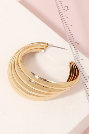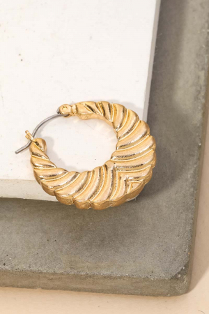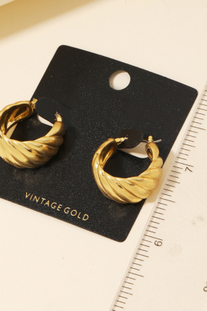 Vintage Gold Metallic Rope Textured Hoop Earrings