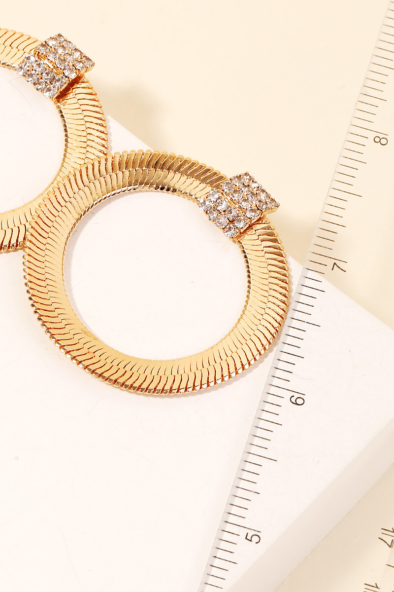 • Elevate any look, this pair of drop earrings shows off a distinctive flat solid snake chain hoop design. Elevate your fashion ensemble effortlessly with this versatile accessory, a stylish choice for the modern trendsetter. Available in G. This item is sold in packs of 1.
