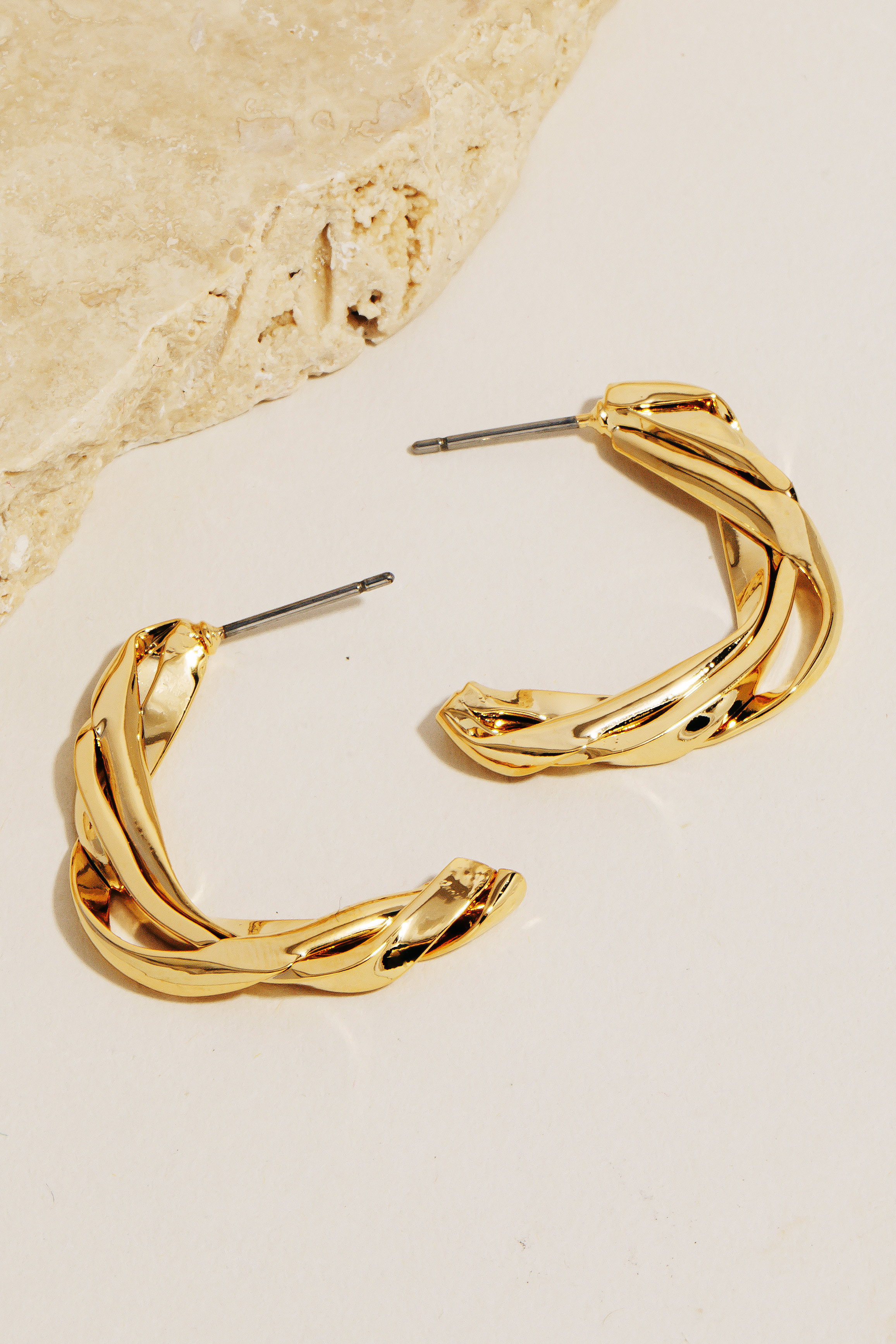 This pair of hoop earrings is made with 100% Brass.