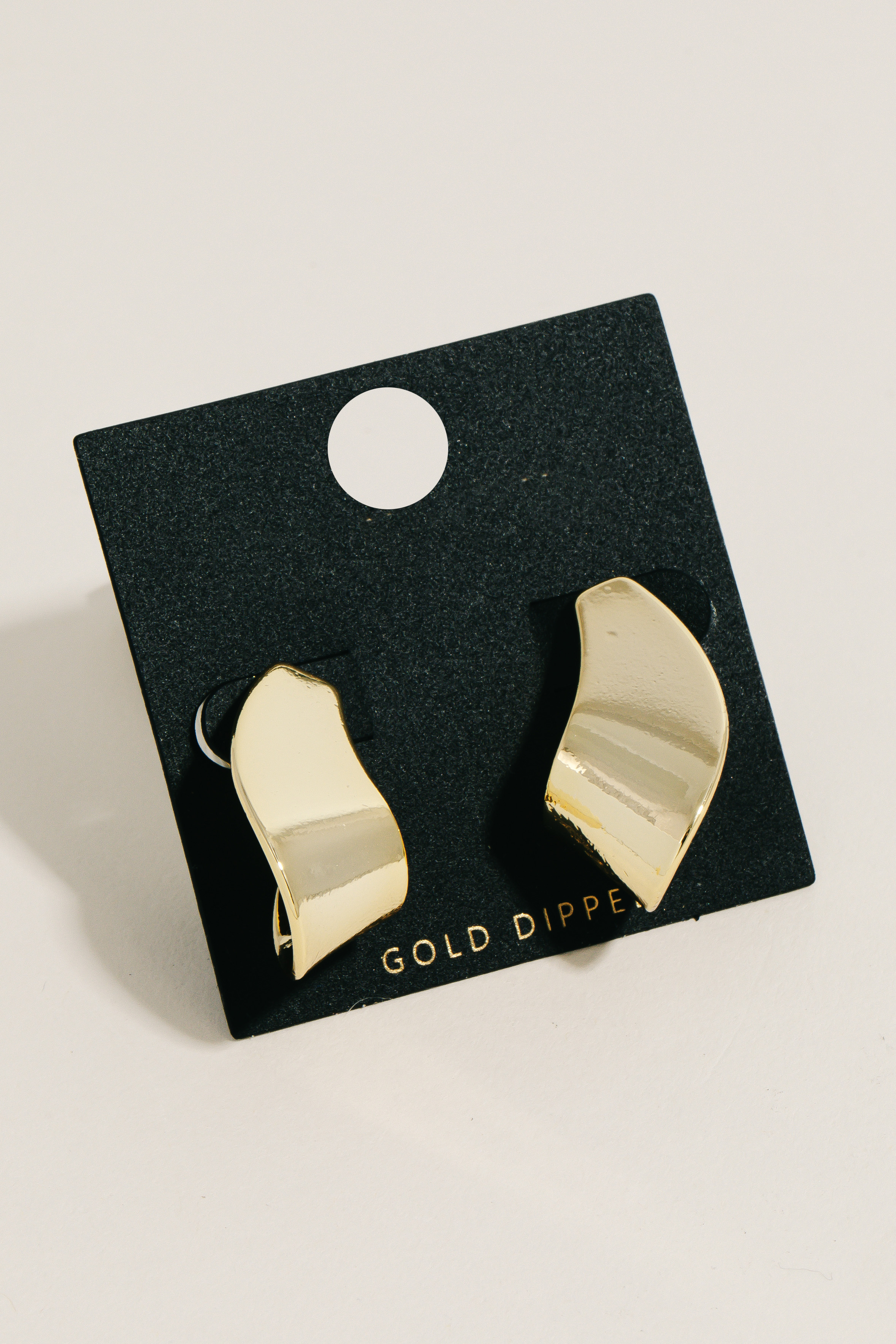 Gold Dipped Flat Rectangle Latch Hoop Earrings