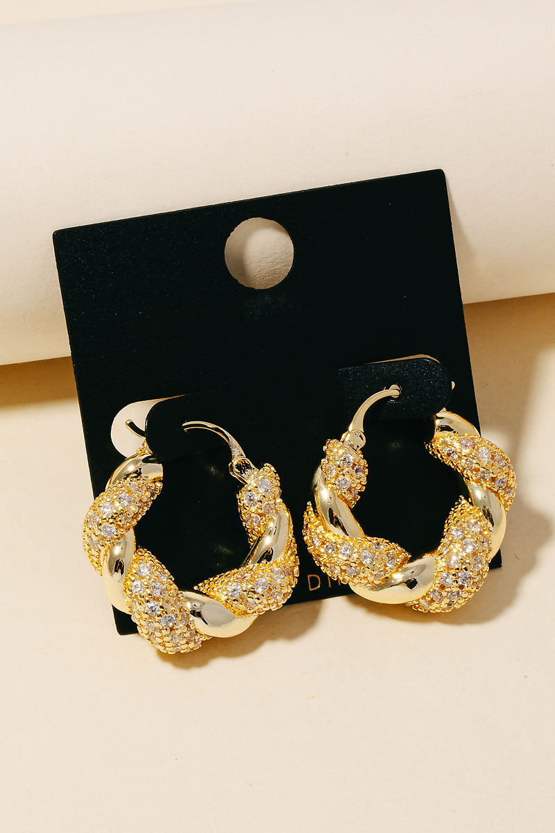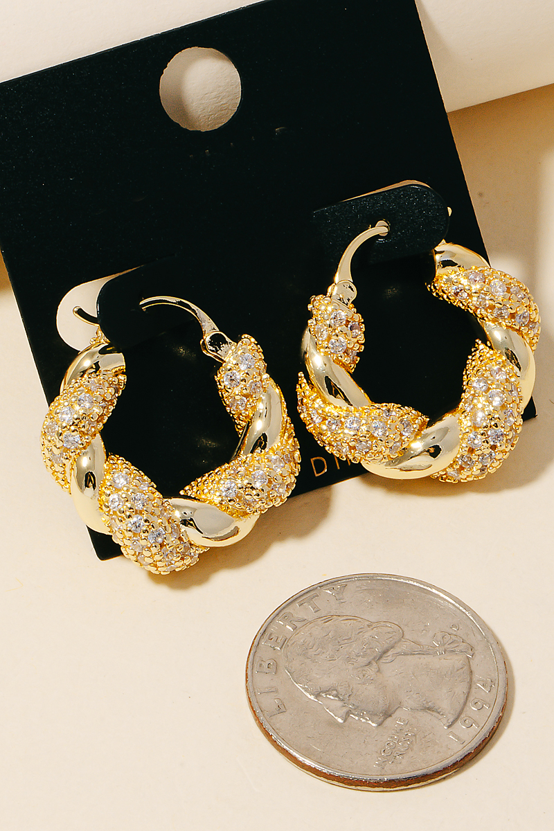 - this pair of columbus jewelry hoop earrings brings a luxurious gold dipped cz pave braided style. Celebrate individual style with this versatile, eye-catching addition.