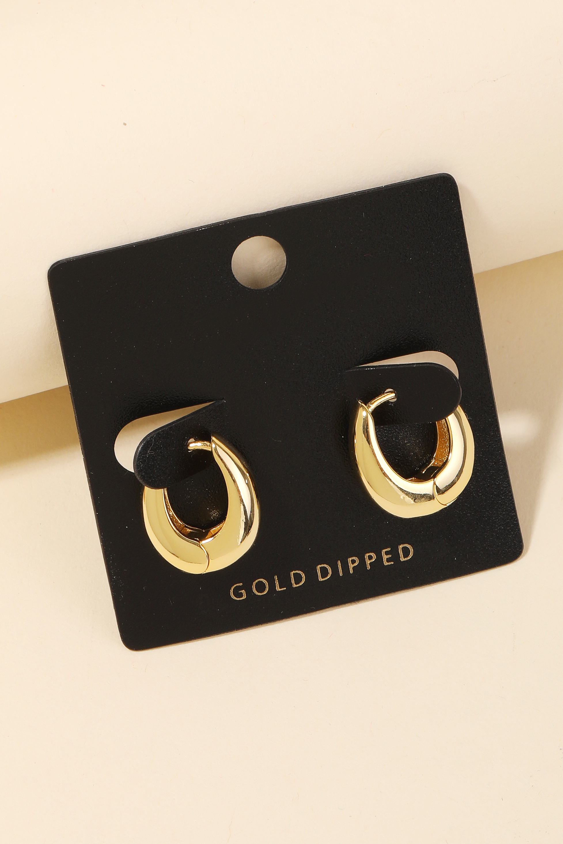 • A piece that will never go out of style, this pair of hoop earrings emanates an elegant gold dipped hinge design. Elevate your outfit with this stylish accessory that's perfect for any occasion. Available in S. This item is sold in packs of 1.