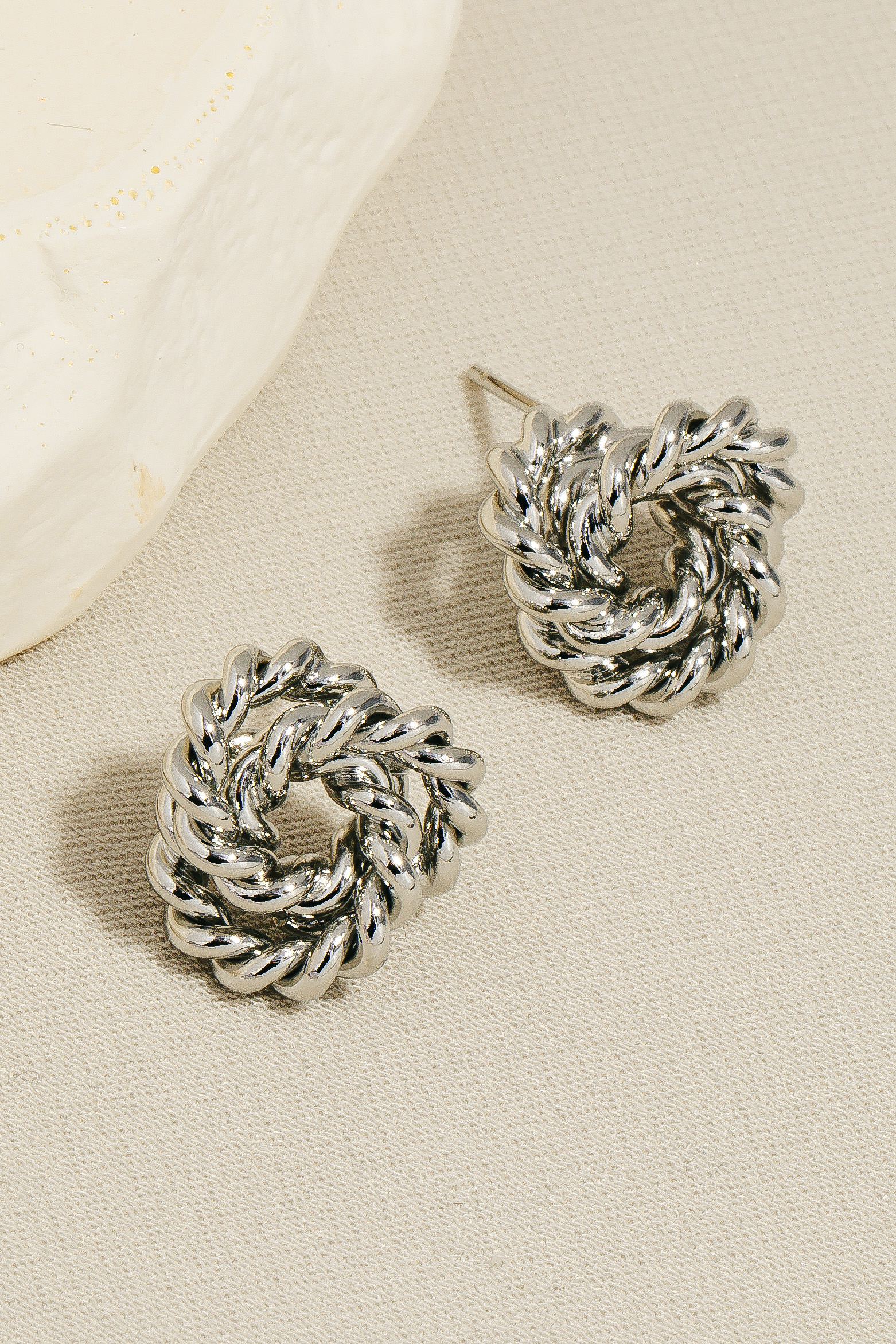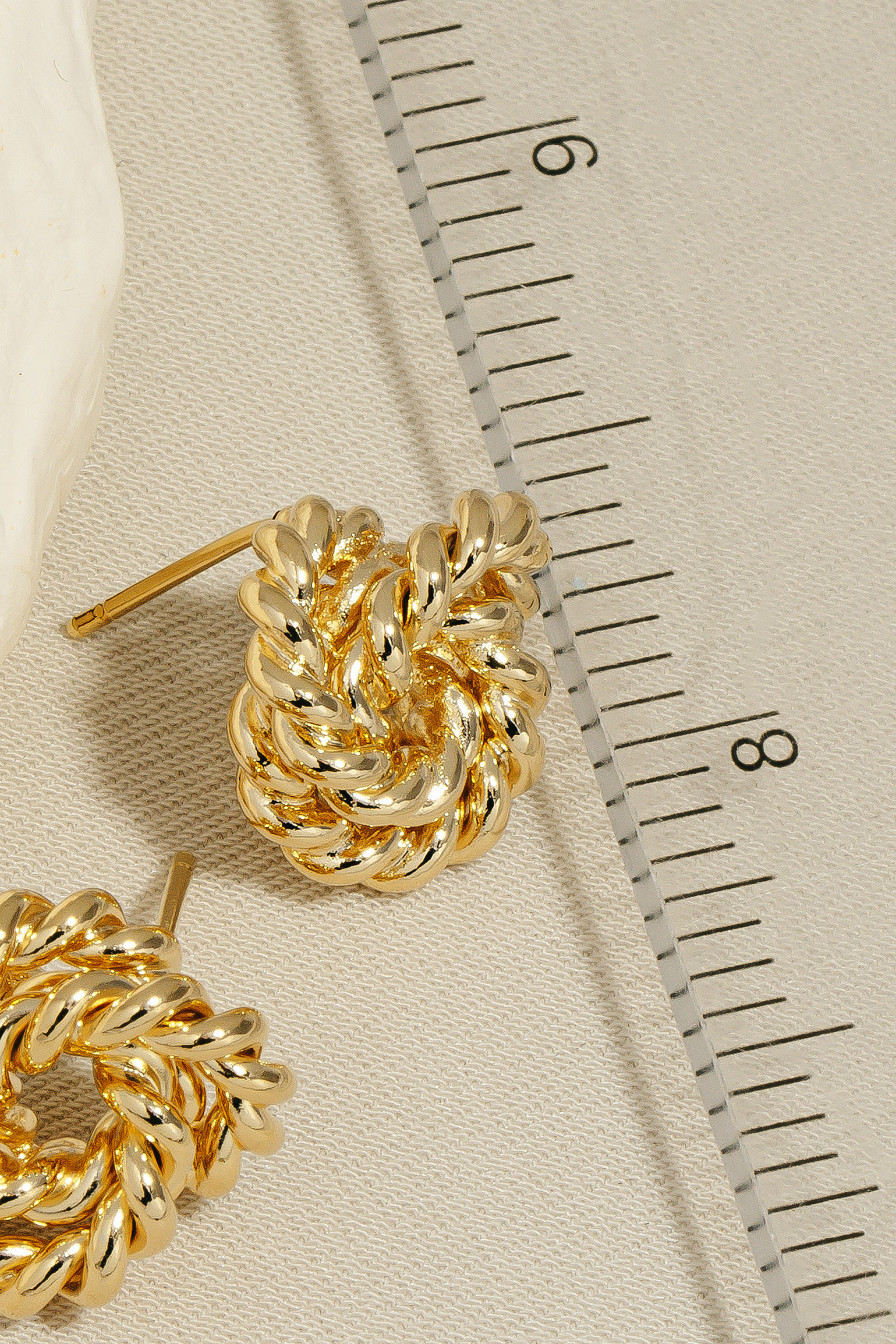 A true work of art, this pair of stud earrings emanates an elegant metallic braided hoop design. Upgrade your fashion game with this versatile accessory, a timeless addition that complements any outfit seamlessly. Available in G and S. This item is sold in packs of 1.