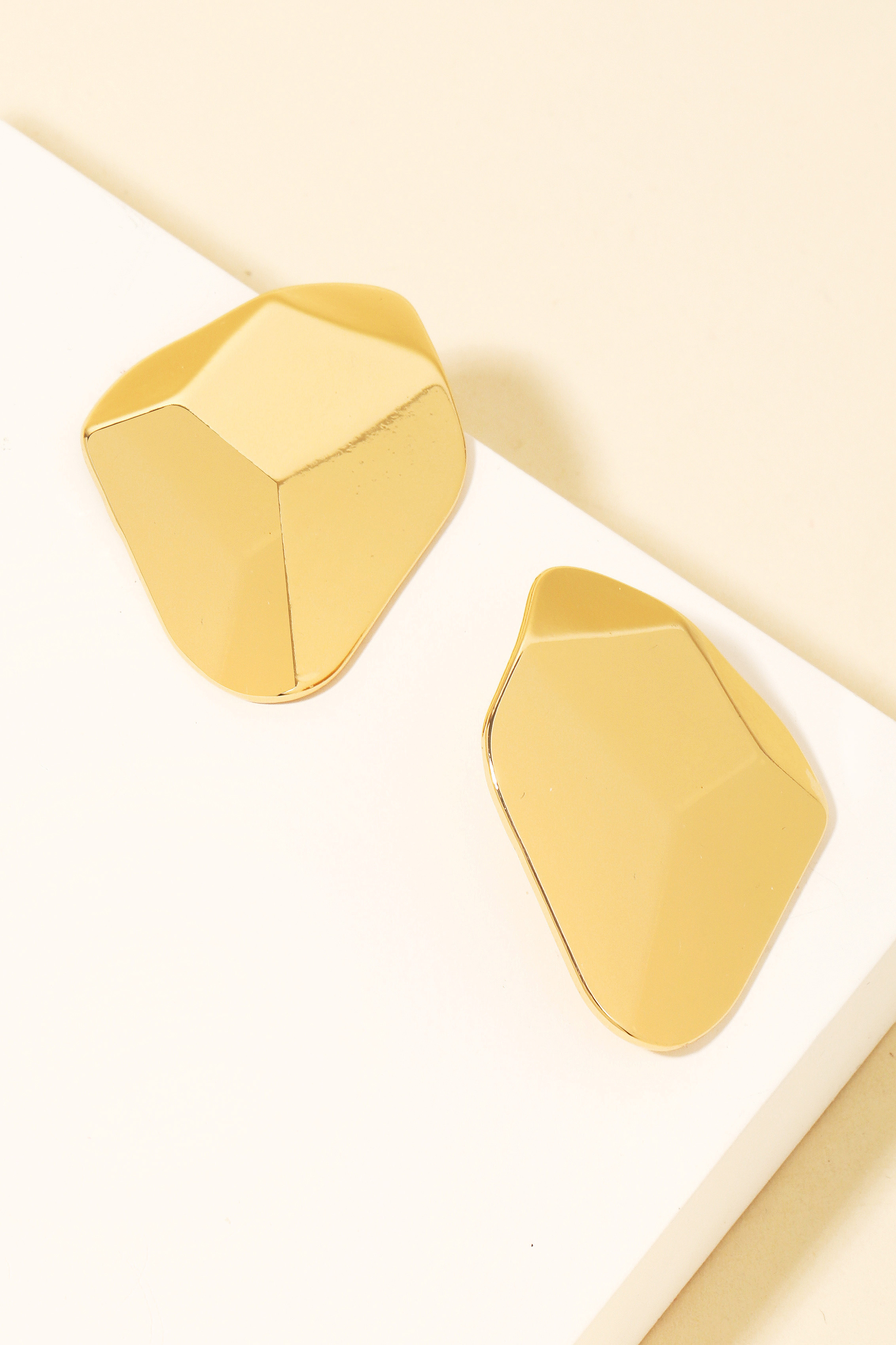 Gold Dipped Ridged Shield Stud Earrings