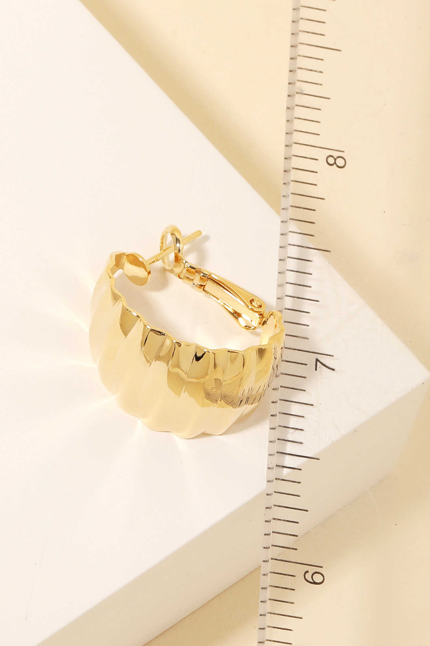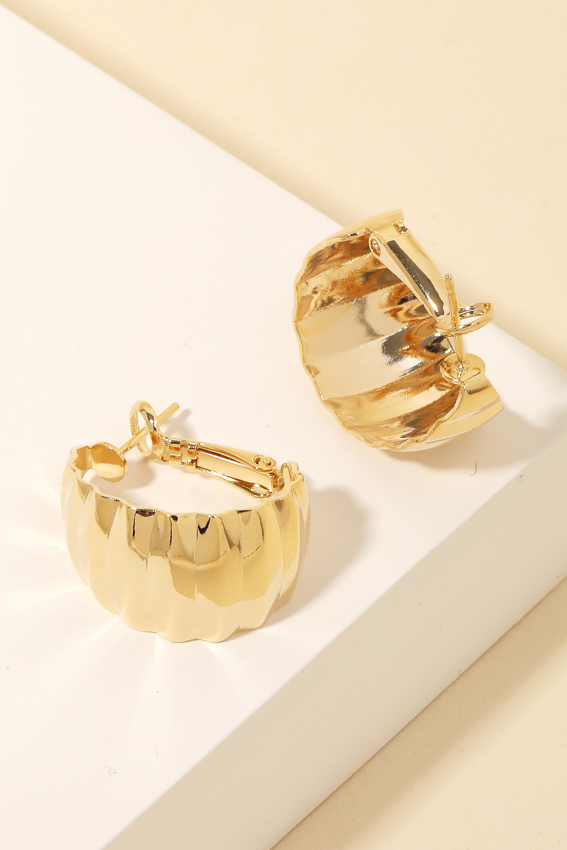 - Upgrade your accessory game with this pair of hoop earrings encompasses a grand ridged wide metallic hoop earrings design. This item is a great way to add some texture and dimension to any outfit. Available in G and S. This item is sold in packs of 1.
