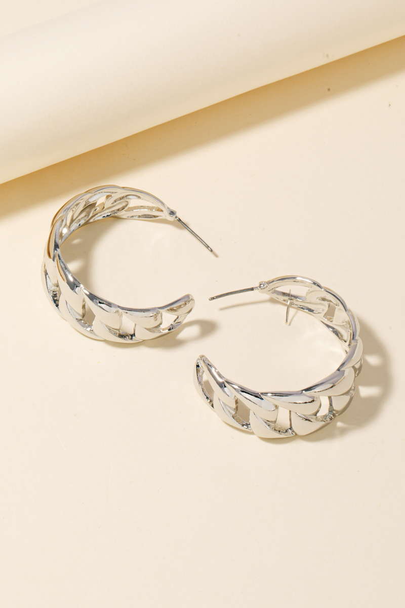 • The epitome of sophistication and style, this pair of hoop earrings radiates a sleek solid metallic flat chain design. Transform your outfit into a fashion masterpiece with this versatile pair of hoop earrings, an essential for the style-conscious individual. Available in GD and RH. This item is sold in packs of 1.