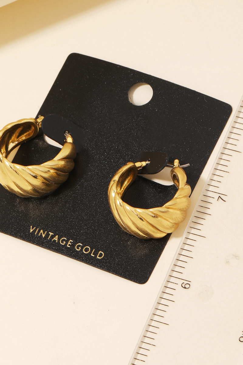 • Make a bold statement with this pair of hoop earrings showcases a breathtaking vintage gold metallic rope textured hoop earrings design. This item is ideal for those who want to add some personality to their wardrobe without being too bold. Available in G. This item is sold in packs of 1.