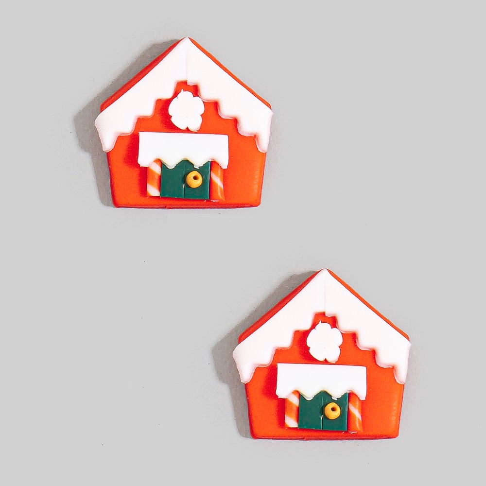 Perfectly polished and endlessly versatile, this pair of earrings incorporates a flawless mini gingerbread house christmas design. A must-have pair of earrings that effortlessly enhances your style, no matter the occasion. Available in RED. This item is sold in packs of 1.