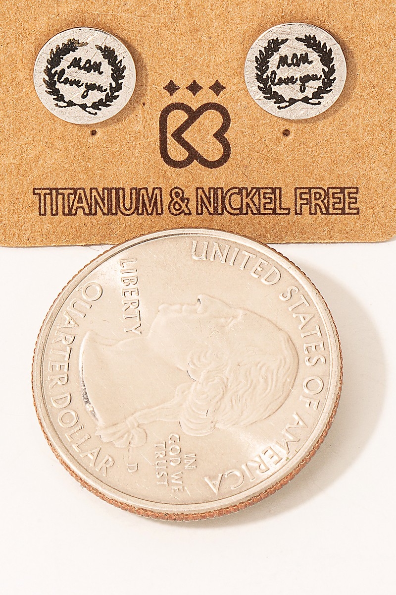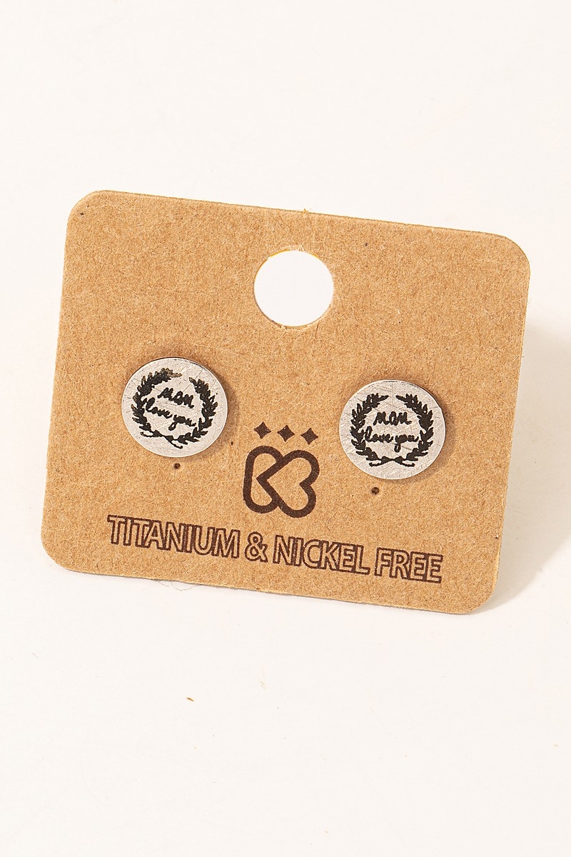 - The perfect way to showcase your unique style, this trending pair of earrings features a distinct mom love you circle stud earrings design. A must-have trending pair of earrings that effortlessly enhances your style, no matter the occasion. This item is sold in packs of 1.