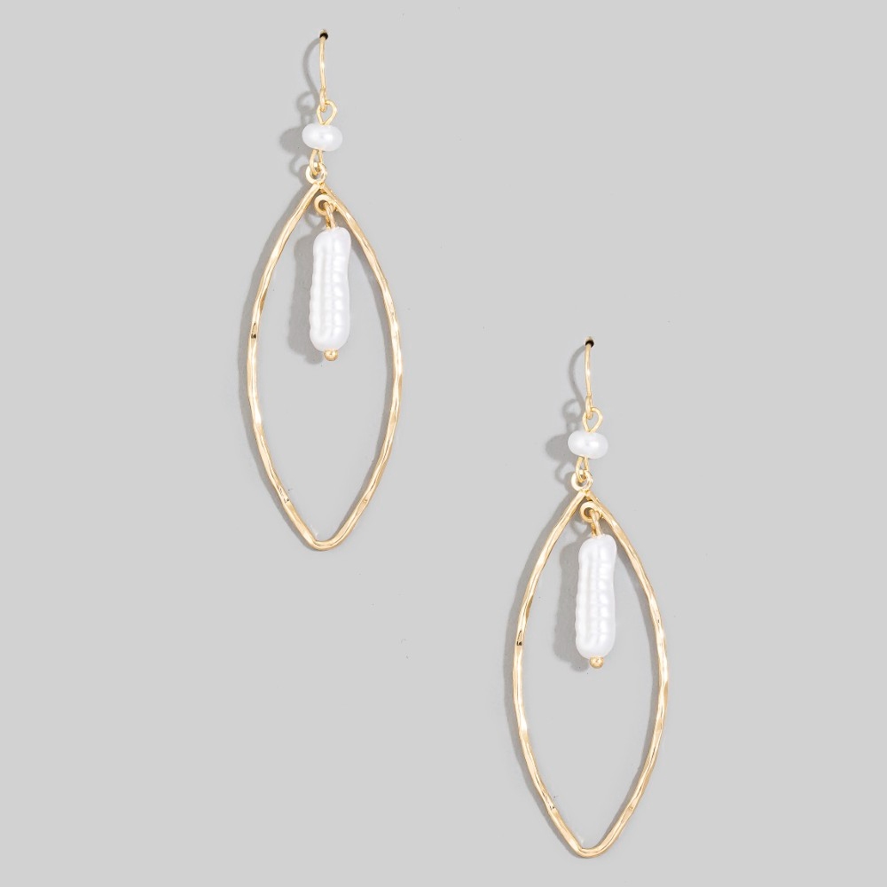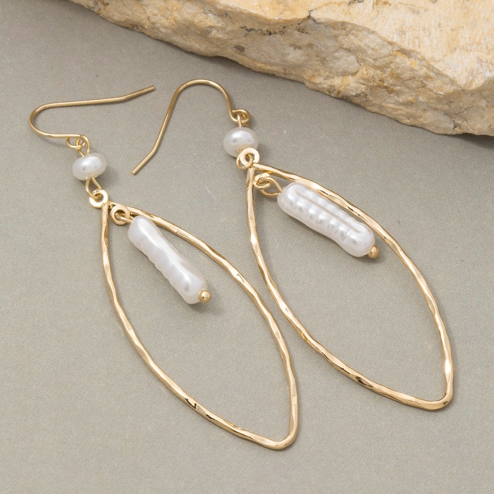 • Bold and daring, this pair of dangle earrings carries a charming pearl beads hammered oval design. This item is ideal for those who want to add some personality to their outfits without being too bold. Available in GP. This item is sold in packs of 1.