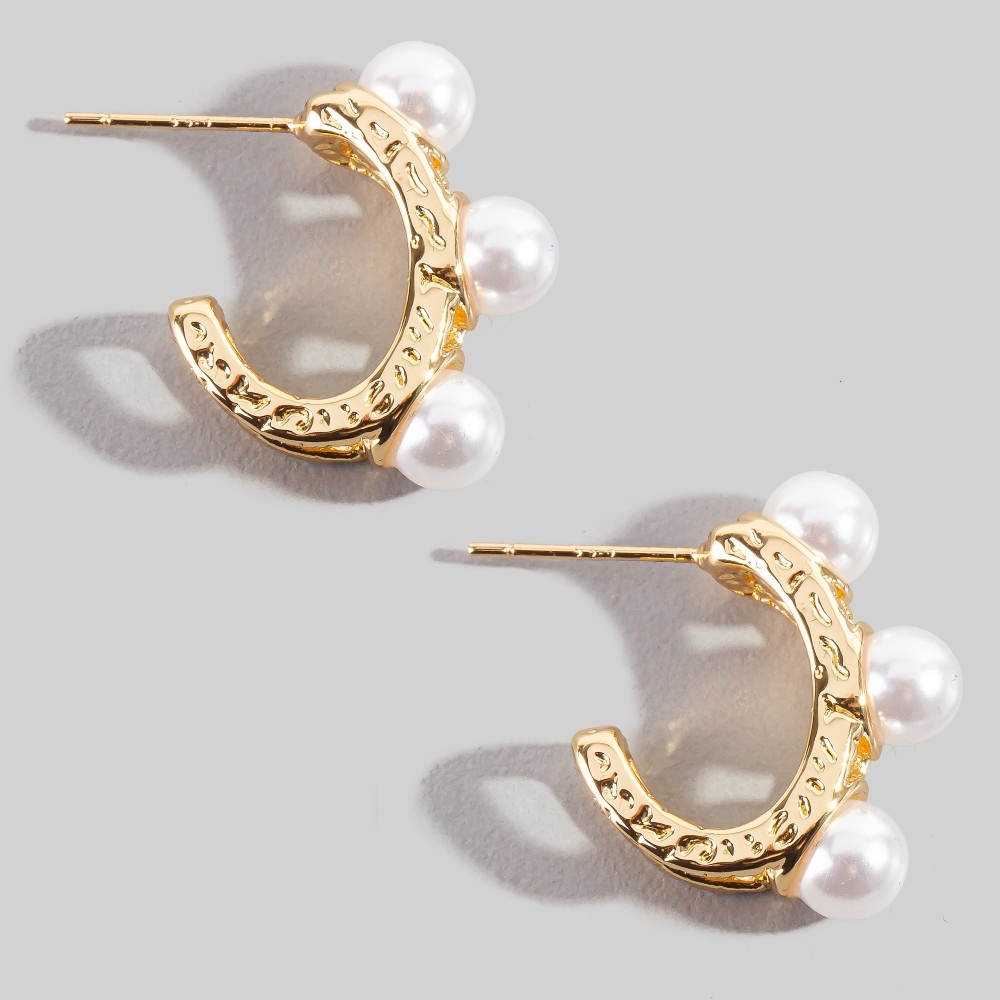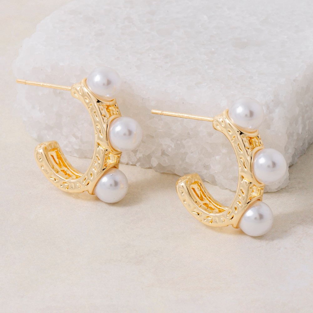 Unleash your inner fashionista, this pair of hoop earrings showcases a breathtaking pearl beads mini design. Unlock endless styling possibilities with this versatile pair of hoop earrings, creating a signature look that speaks volumes. Available in G. This item is sold in packs of 1.
