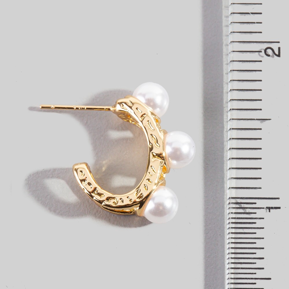 This pair of hoop earrings is made with 90% Brass and 10% Plastic Pearl.