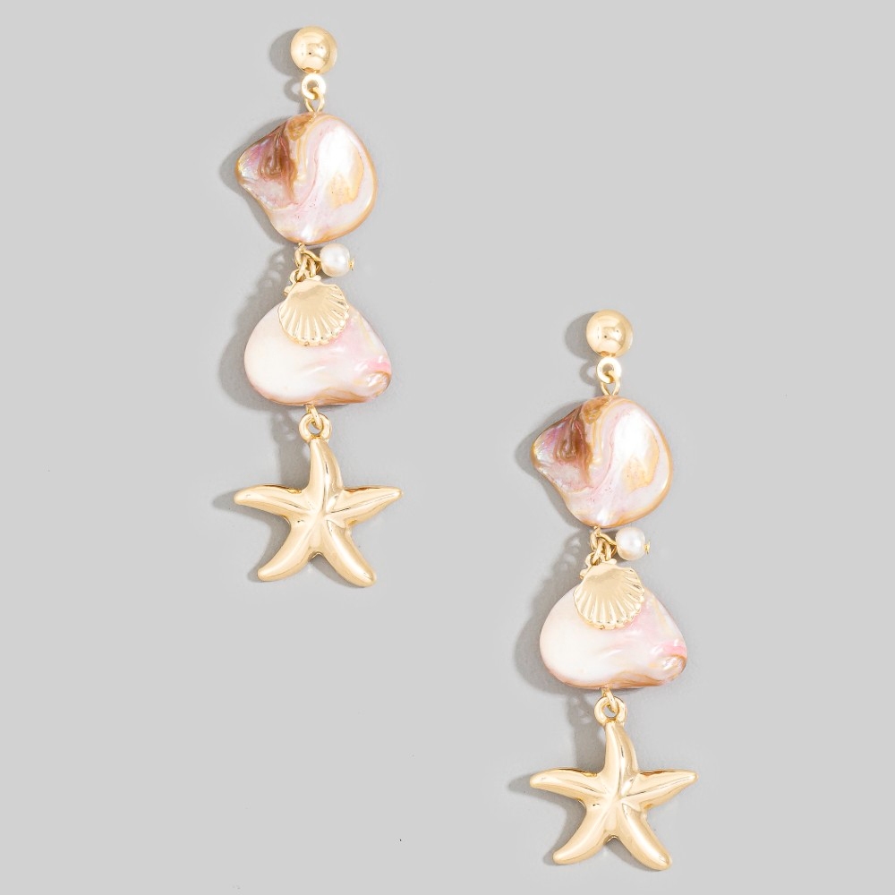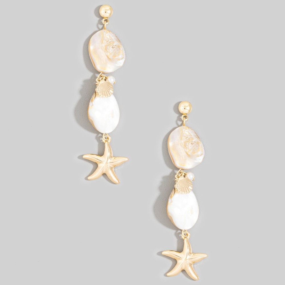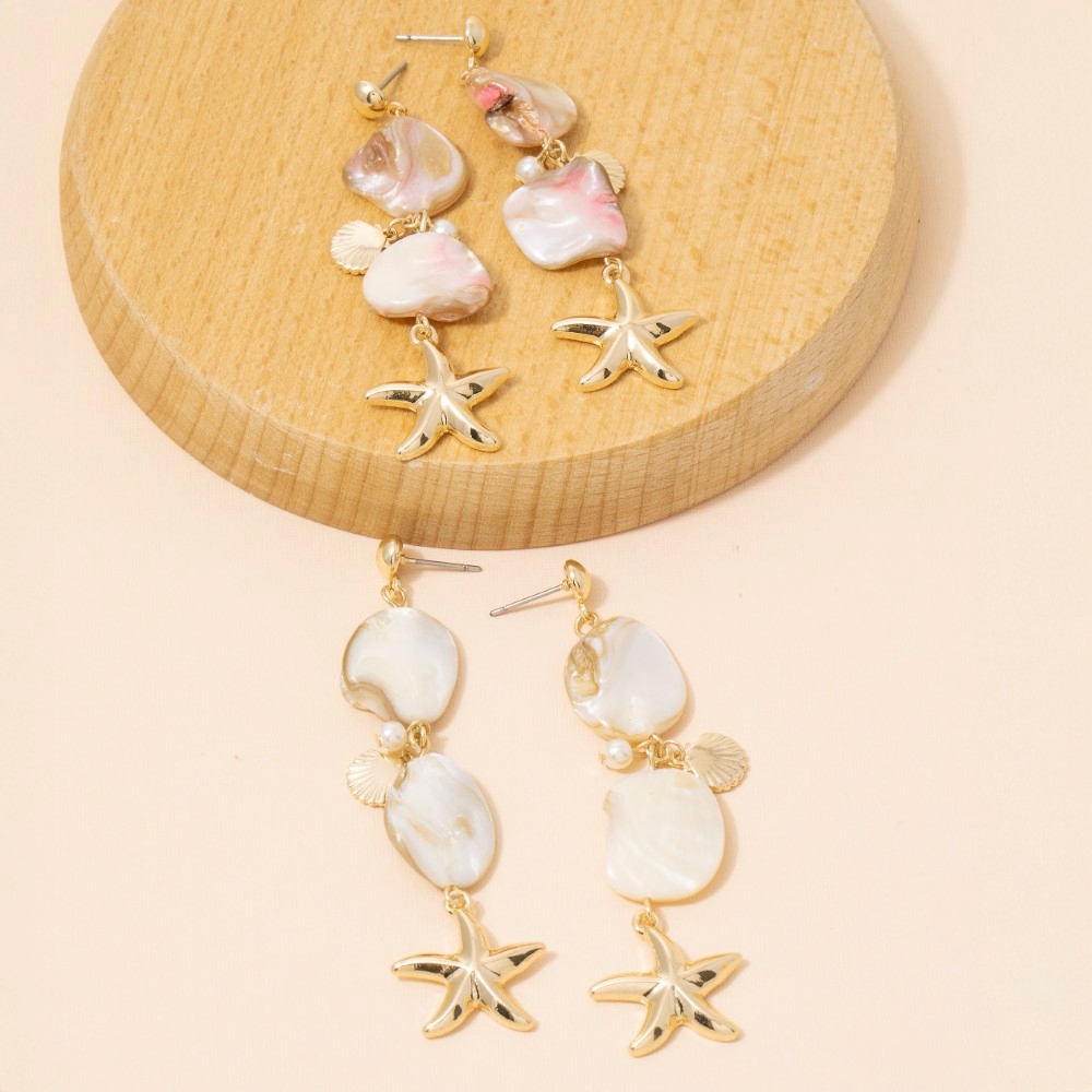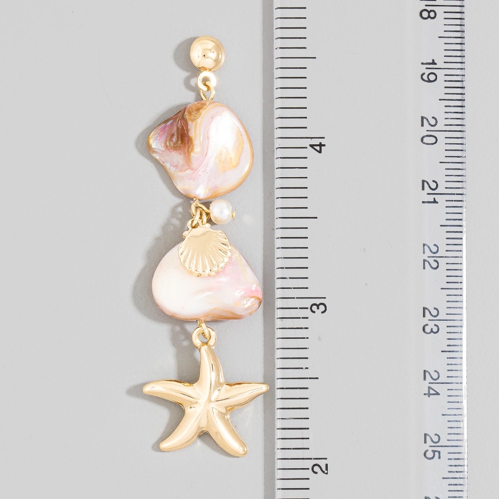 • Stay on-trend and stand out from the crowd, this pair of drop earrings presents a striking pearl and starfish charm design. Redefine your wardrobe with this versatile pair of drop earrings, a timeless addition that brings an air of sophistication to any look. Available in GMO, GPK. This item is sold in packs of 1.