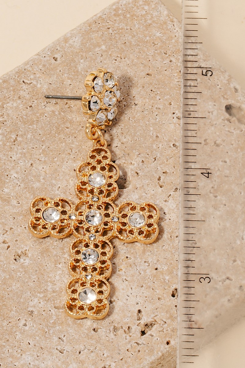 • A unique and stylish piece that sets you apart, this pair of dangle earrings radiates a sleek pearl stud ornate cross design. This item is the perfect finishing touch to any outfit, adding a touch of glamour and sophistication. Available in GDCR and GDCRM. This item is sold in packs of 1.
