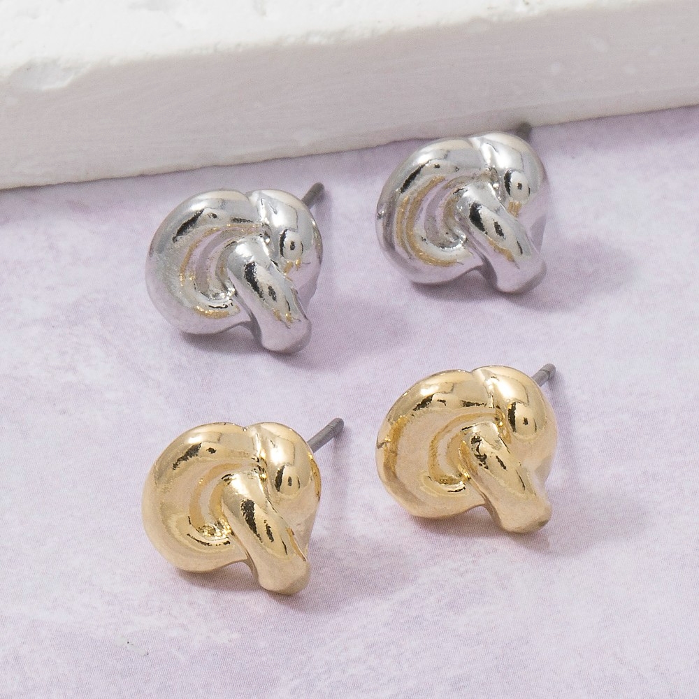 • Unleash your inner fashionista, this pair of stud earrings includes a stunning puffy knot design. This pair of stud earrings is ideal for both casual and formal events, adding a touch of sophistication to any outfit. This item is sold in packs of 1.