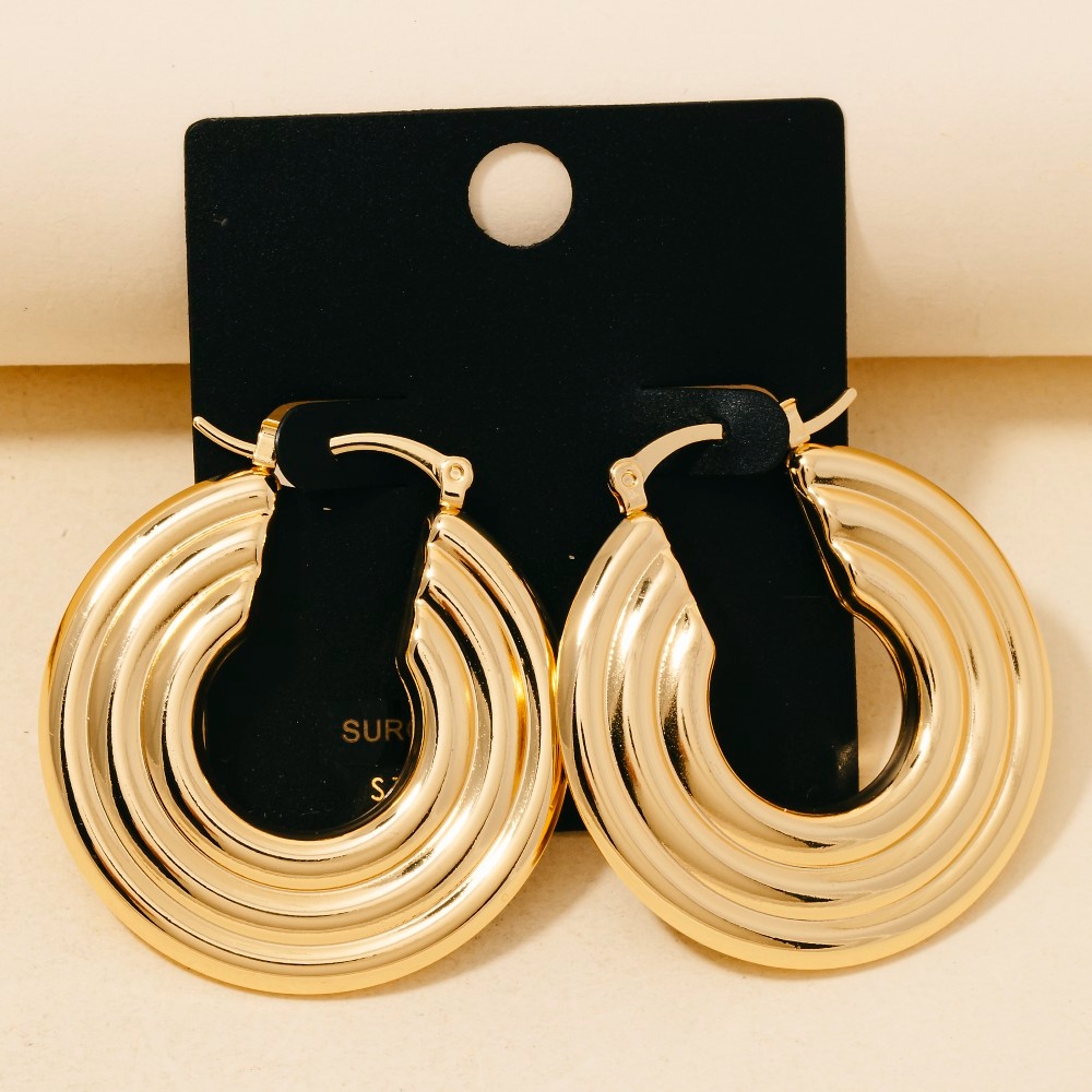 Add a touch of luxury to any outfit, this pair of hoop earrings embodies a sophisticated pvd stainless steel large grooved design. Elevate your fashion game with this versatile pair of hoop earrings, seamlessly integrating into your signature style. Available in NO COLOR. This item is sold in packs of 1.