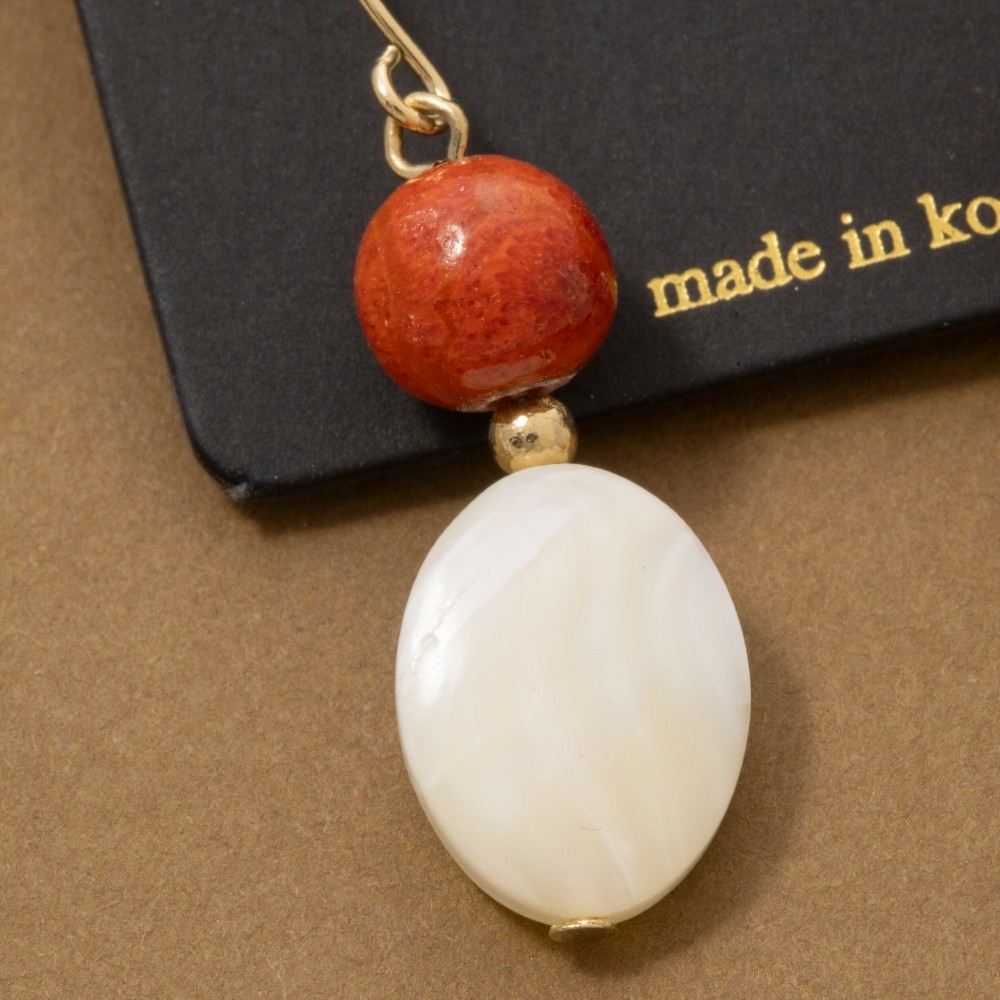 • This pair of drop earrings is made with 5% Brass, 45% Coral and 45% Shell.