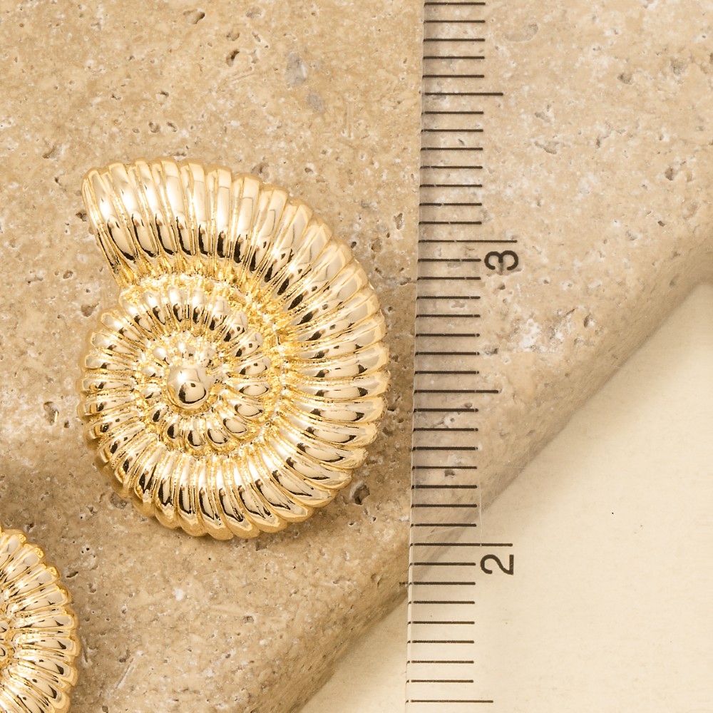 Sleek and modern, this pair of earrings carries a charming ribbed texture nautilus seashell design. A must-have pair of earrings that adds a unique flair to any look. Available in G2. This item is sold in packs of 1.