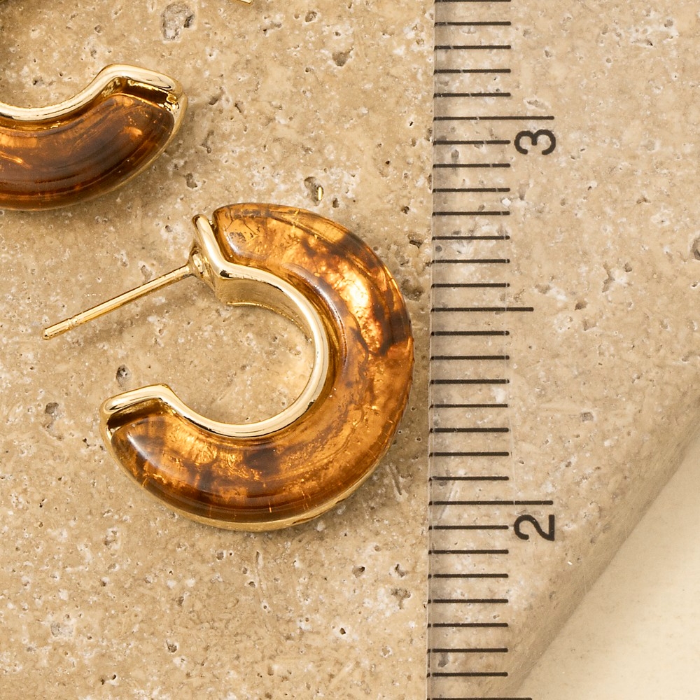A stunning addition to any jewelry collection, this pair of post earrings introduces an exceptional round resin c design. This item is the perfect finishing touch to any outfit, adding a touch of glamour and sophistication. Available in BRG2, IVG2. This item is sold in packs of 1.