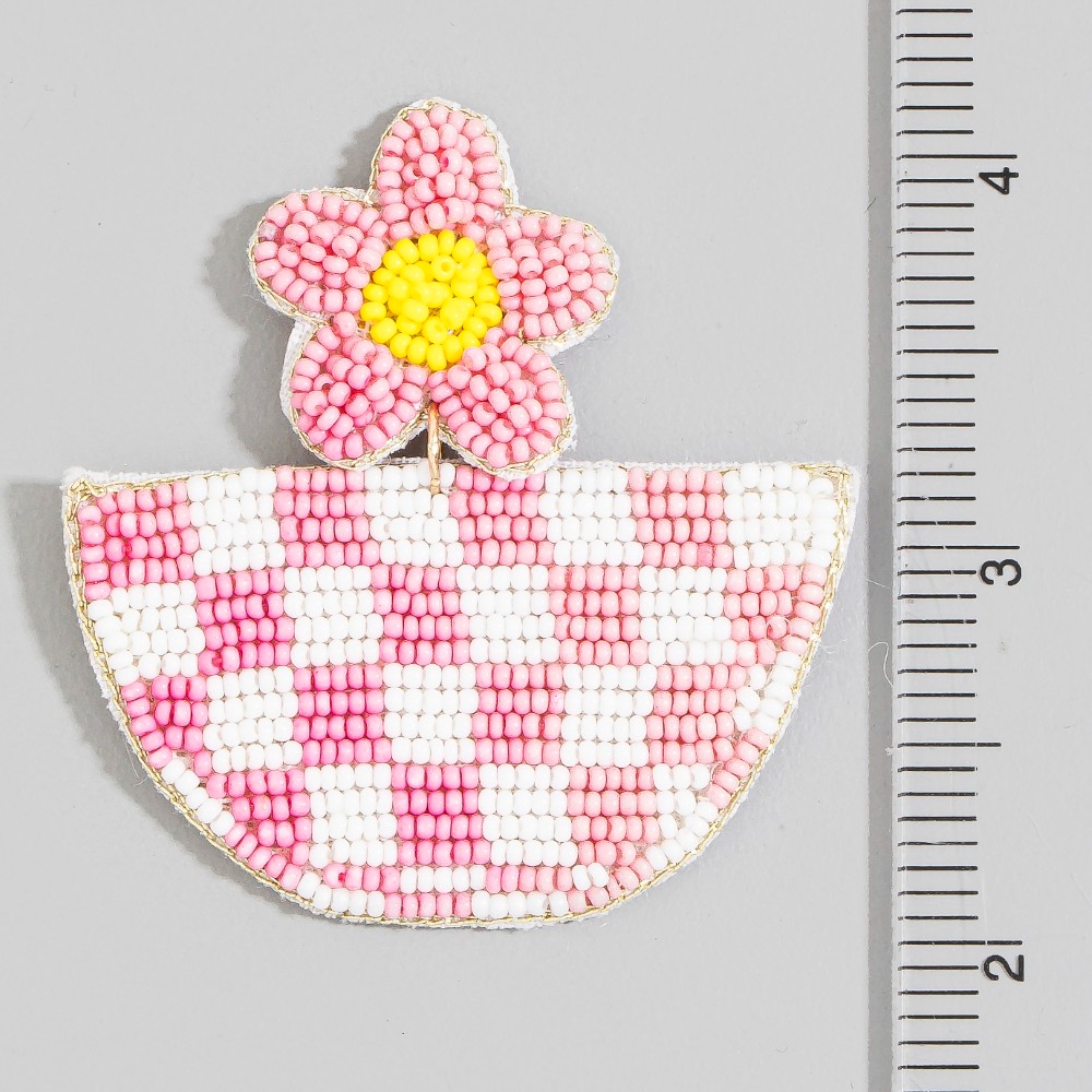 - A bold and daring choice that is sure to impress, this pair of drop earrings contains a special seed beaded checkered semicircle design. Master the art of accessorizing with this versatile pair of drop earrings, a key element for achieving a chic and polished look. Available in FU,BK,TQ and WTMT. This item is sold in packs of 1.