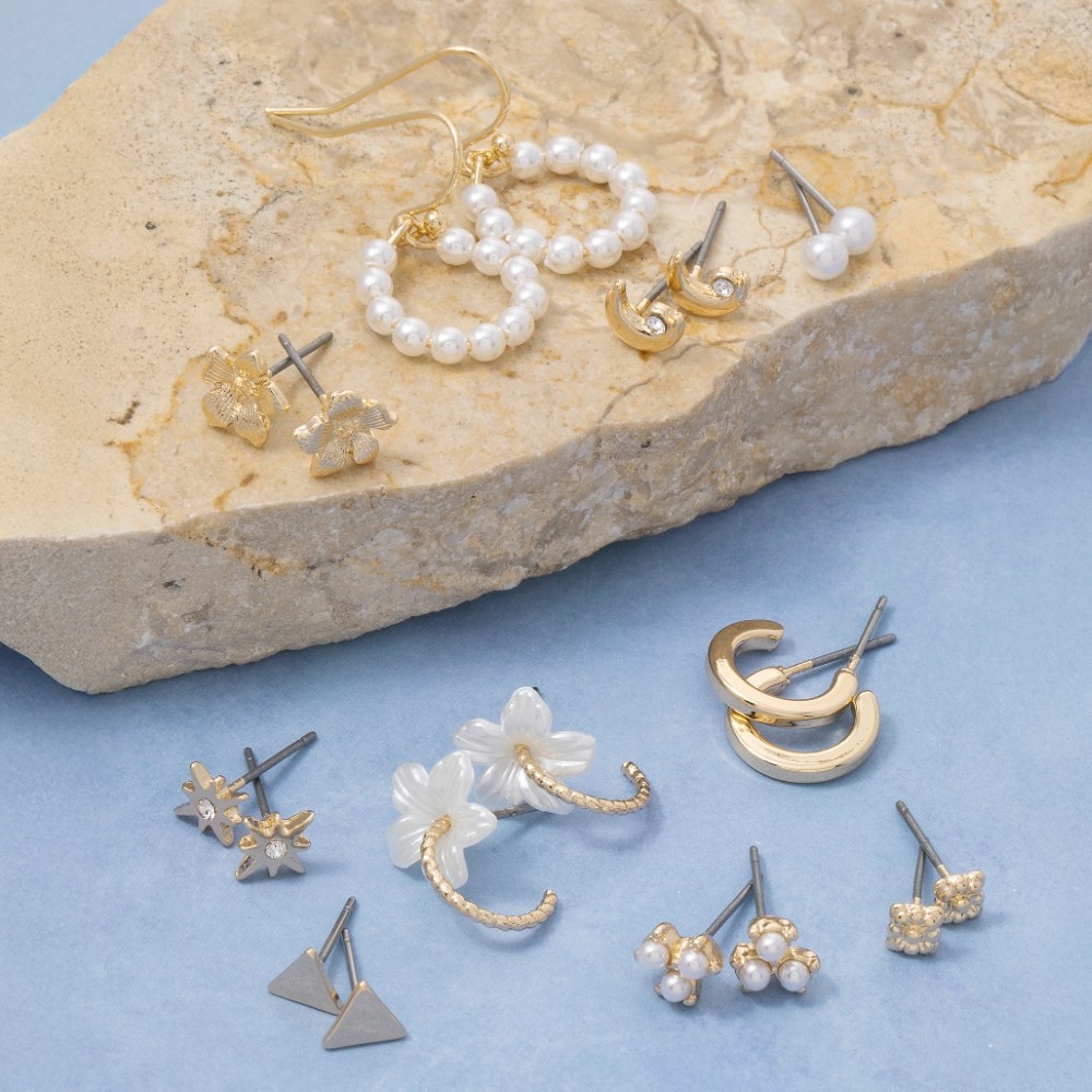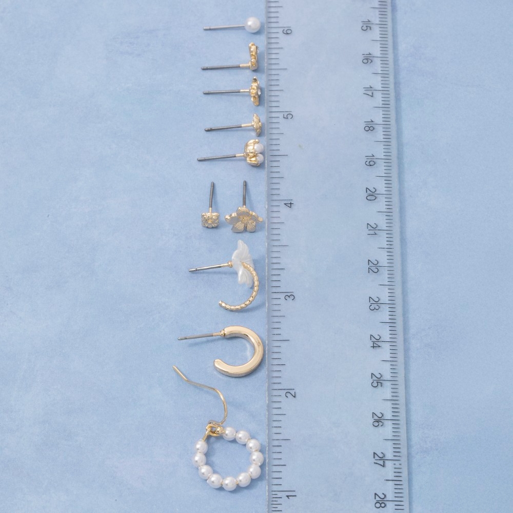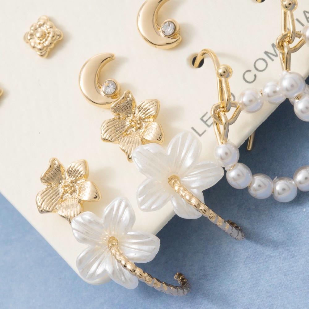 A stunning addition to any jewelry collection, this pair of earrings highlights a special 10 pair assorted floral and pearl set design. Embrace fashion flexibility with this versatile pair of earrings, designed to effortlessly enhance the sophistication of any outfit. Available in G. This item is sold in packs of 1.