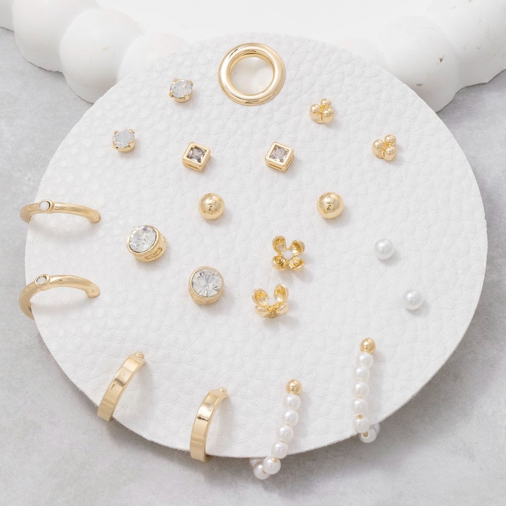 - Add some edge to your look, this pair of earrings incorporates a remarkable assorted pearls and flowers set design. Perfect for any occasion, this versatile pair of earrings will enhance any outfit you wear. Available in GDWHT. This item is sold in packs of 1.
