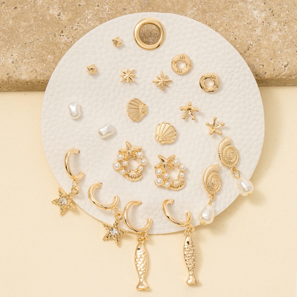 • Unleash your inner fashionista, this pair of stud earrings features a distinct assorted sea life 10 pair set design. This item is a great way to add some texture and dimension to any outfit. Available in GDCRM. This item is sold in packs of 1.