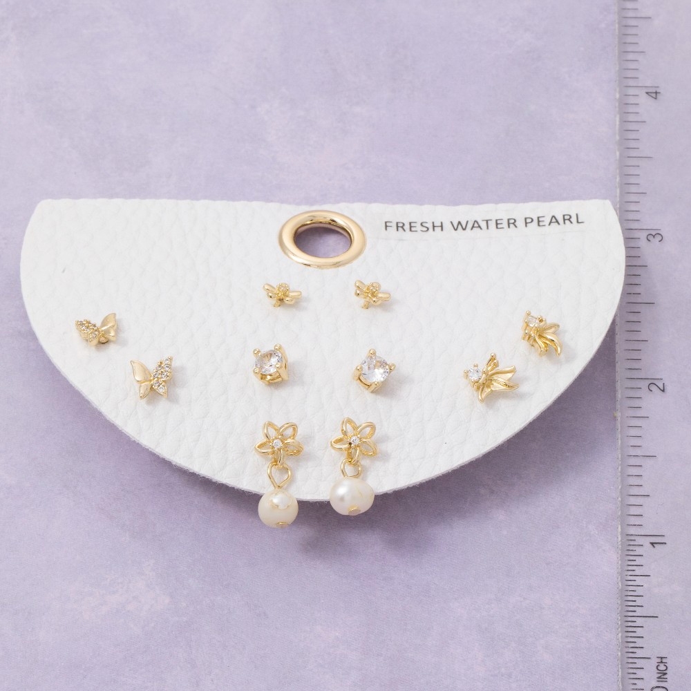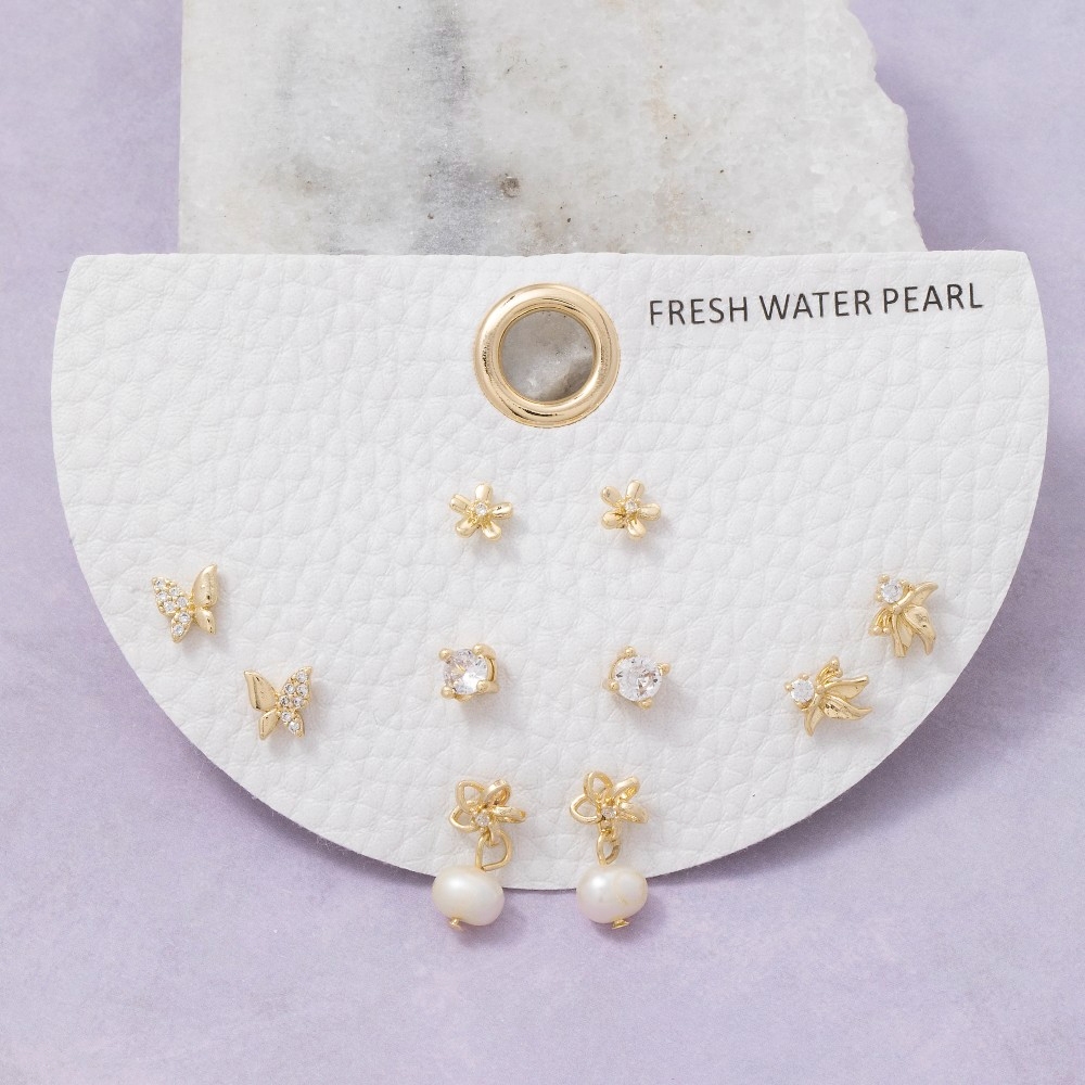 - Stay on-trend and ahead of the fashion curve, this pair of earrings showcases an alluring butterflies and pearls mixed set design. A stylish pair of earrings that's perfect for complementing any outfit you wear. Available in GDCRM. This item is sold in packs of 1.