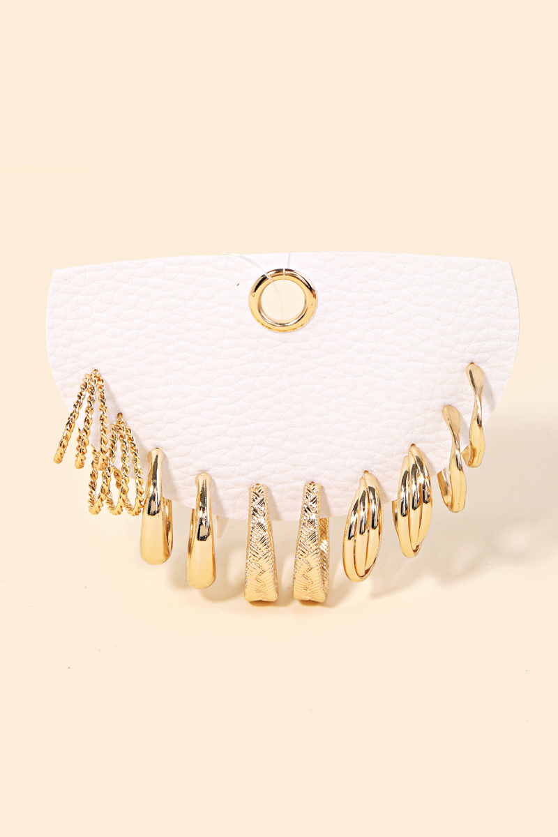 - This piece is designed to make a statement, this set of earrings flaunts a luxurious five pair assorted hoop earrings set design. This item is perfect for anyone who loves to accessorize and add some personality to their outfits. Available in G and S. This item is sold in packs of 1.