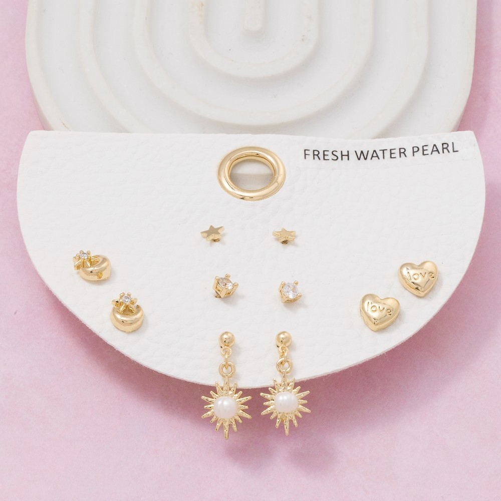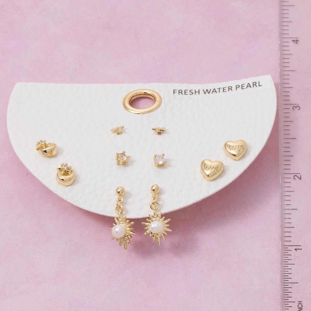 - The perfect way to elevate any outfit, this pair of stud earrings contains a special heart and moon mixed set design. This item is perfect for adding some color and vibrancy to any outfit. Available in GDCRM. This item is sold in packs of 1.