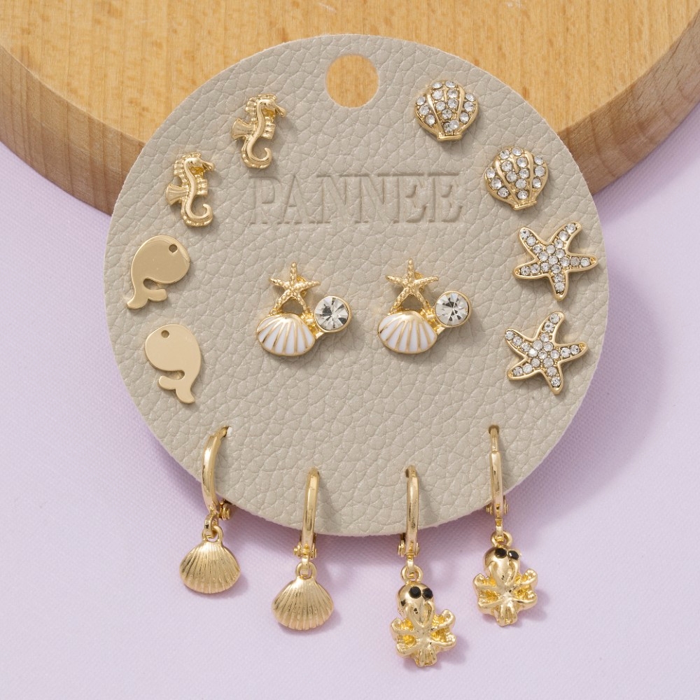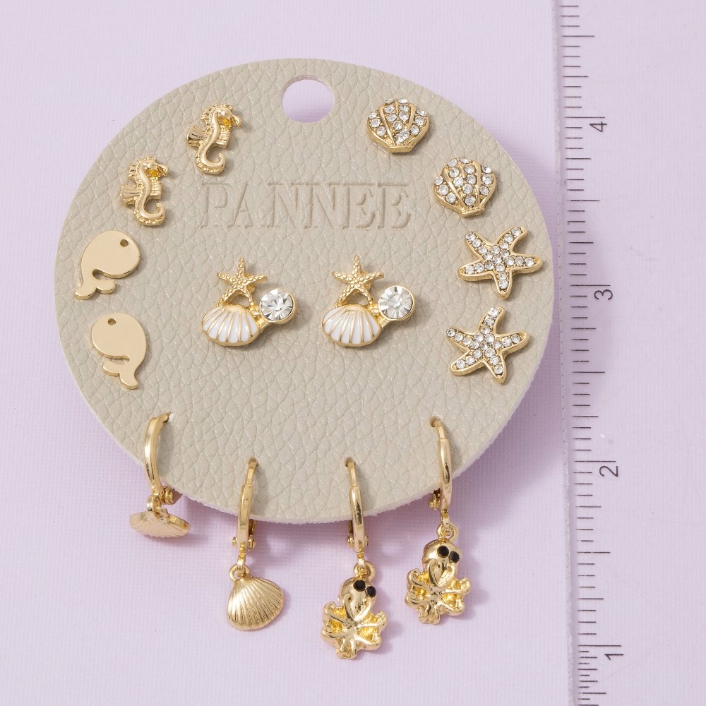 Mixed Sea Life Pearl And Enamel Earrings Set