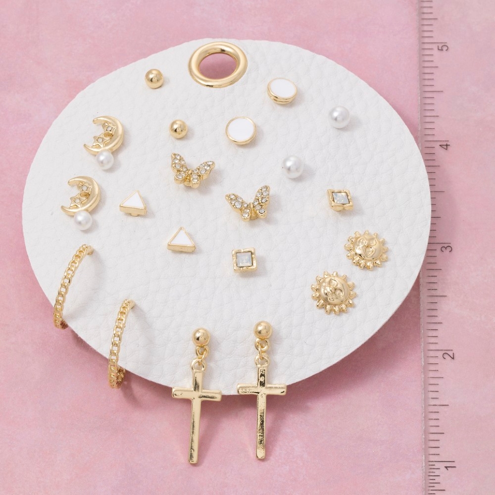 - A timeless piece that will never go out of style, this pair of earrings reveals an intricate mixed pearls and cross set design. This item is the perfect way to add some texture and interest to any outfit. Available in GDWHT. This item is sold in packs of 1.