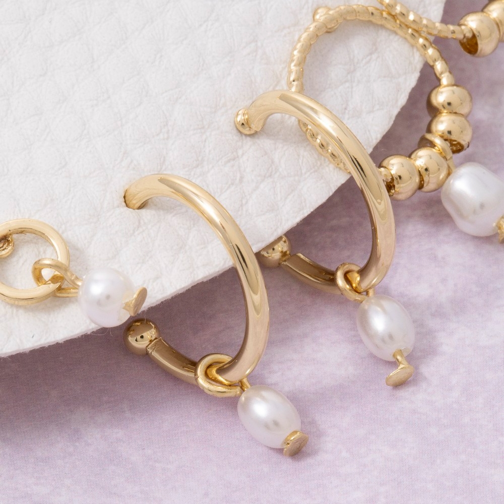 • A classic design with a modern twist, this pair of earrings showcases an alluring mixed pearls stud and hoops set design. Take your style to the next level by incorporating this versatile pair of earrings, a key element in achieving a polished look. Available in GDCRM, RHCRM. This item is sold in packs of 1.