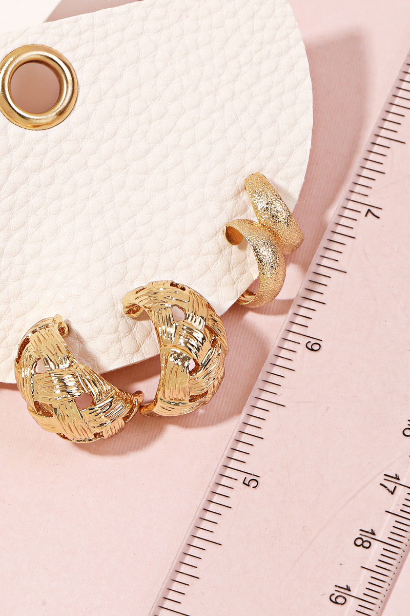 Stay on-trend and stand out from the crowd with this pair of hoop earrings embodies a sophisticated mixed texture hoop earrings set design. This item is perfect for anyone who loves to accessorize and add some personality to their outfits. Available in G. This item is sold in packs of 1.