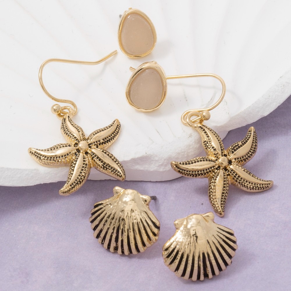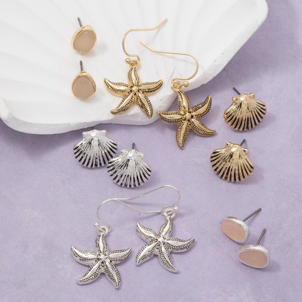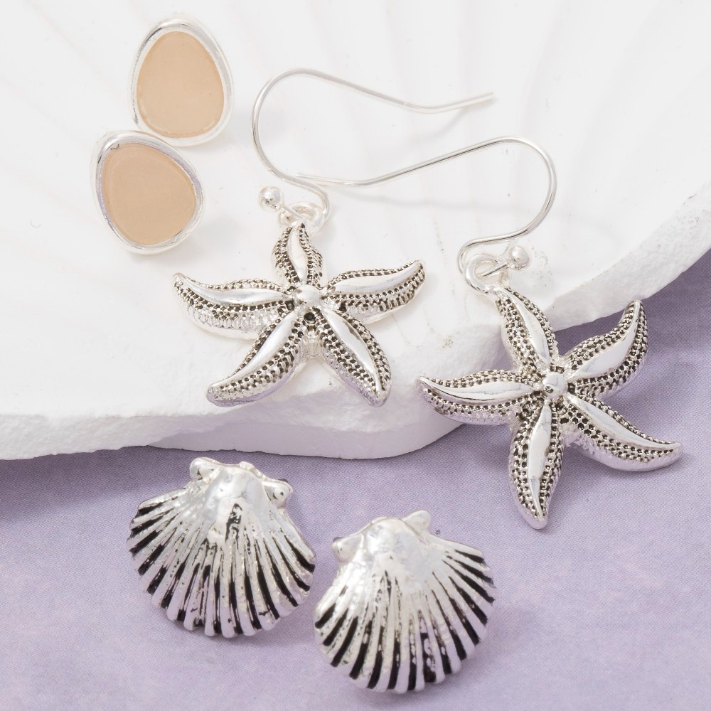 - Stay on-trend and stand out from the crowd, this pair of stud earrings features a distinct sea life and pink oval gem set design. A must-have pair of stud earrings that effortlessly enhances your style, no matter the occasion. Available in AGPE, ASPE. This item is sold in packs of 1.