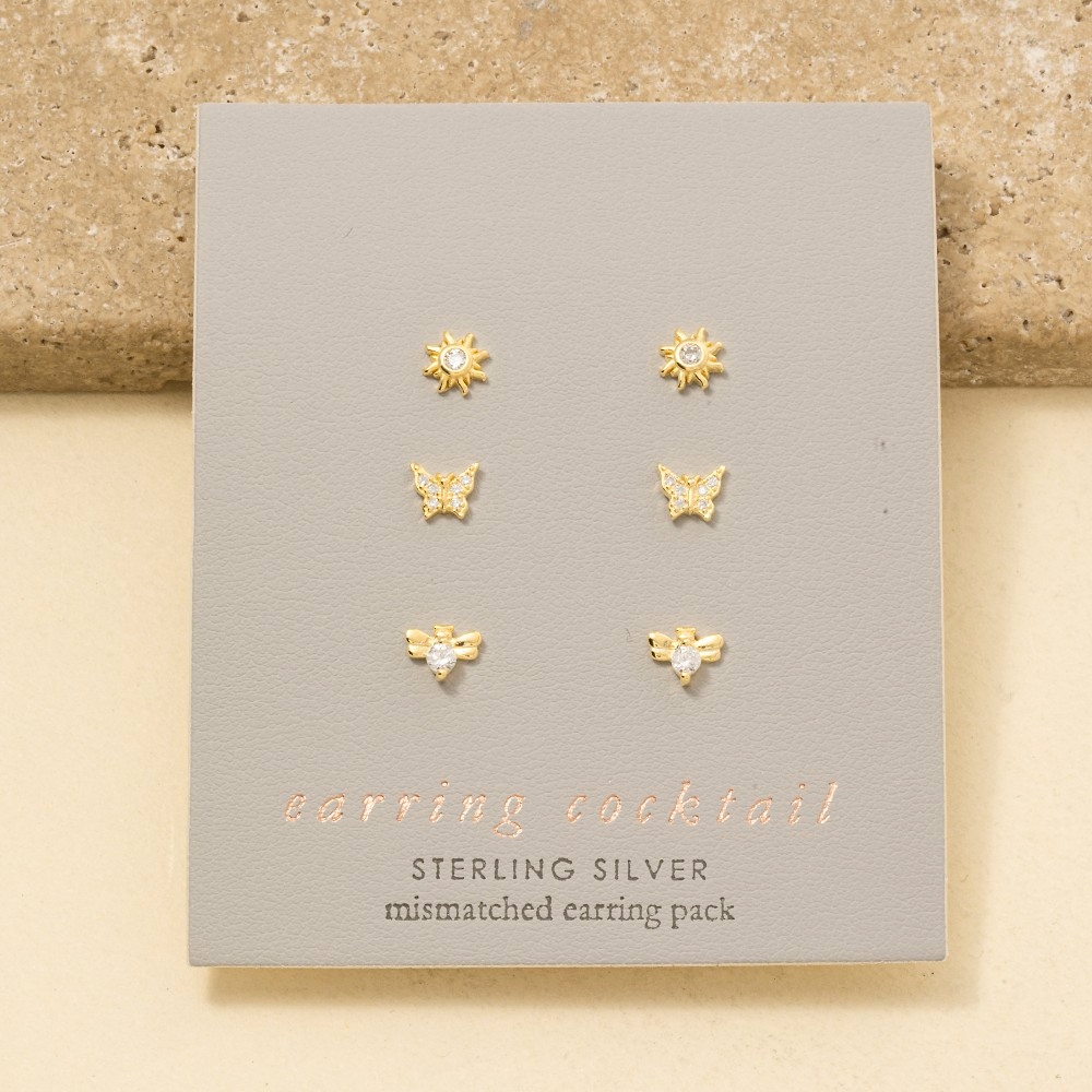 Secret Box Gold Dipped Mixed Shape Stud Earrings Set