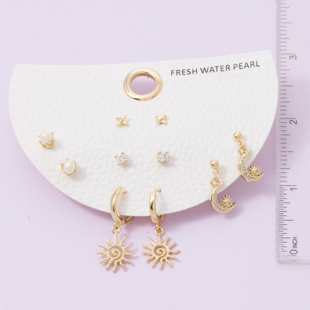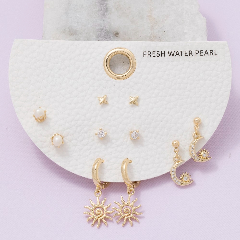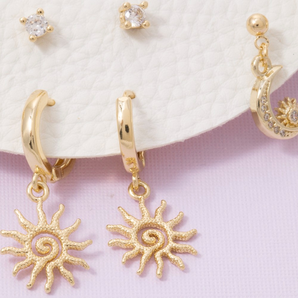 A bold and daring choice, perfect for those who want to stand out from the crowd, this pair of earrings contains a special sun and moon mixed set design. Perfect for dressing up your favorite outfit, this pair of earrings is a must-have. Available in GDCRM. This item is sold in packs of 1.