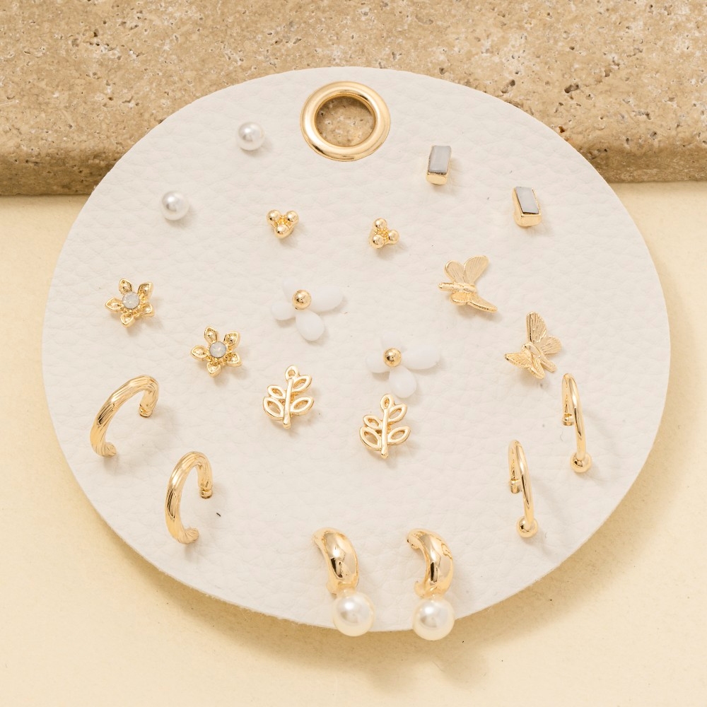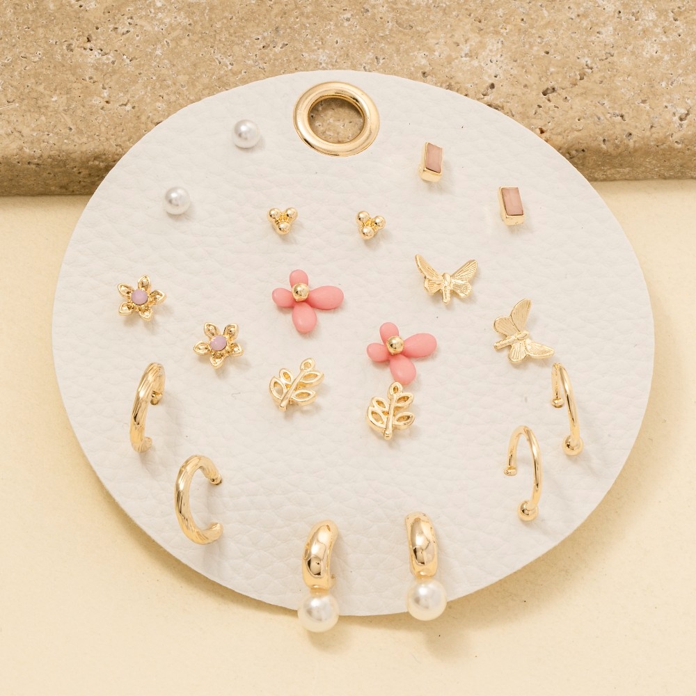 • Add a touch of luxury to any outfit, this pair of earrings showcases a breathtaking ten pair assorted butterfly flower set design. A versatile pair of earrings that's perfect for any occasion, adding a touch of elegance and style to any outfit. Available in GDPNK, GDWHT. This item is sold in packs of 1.
