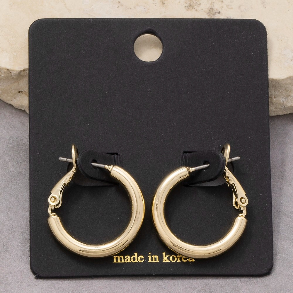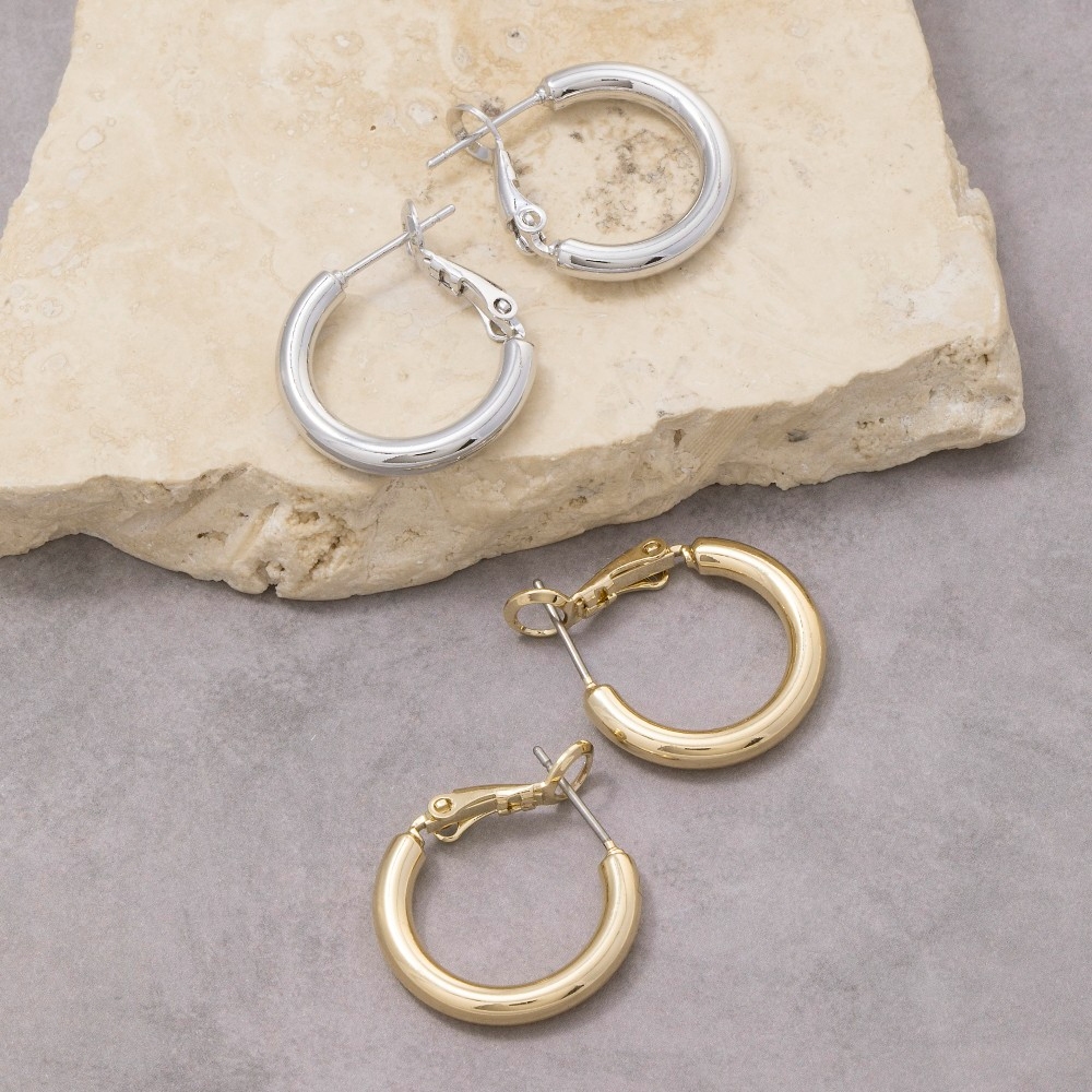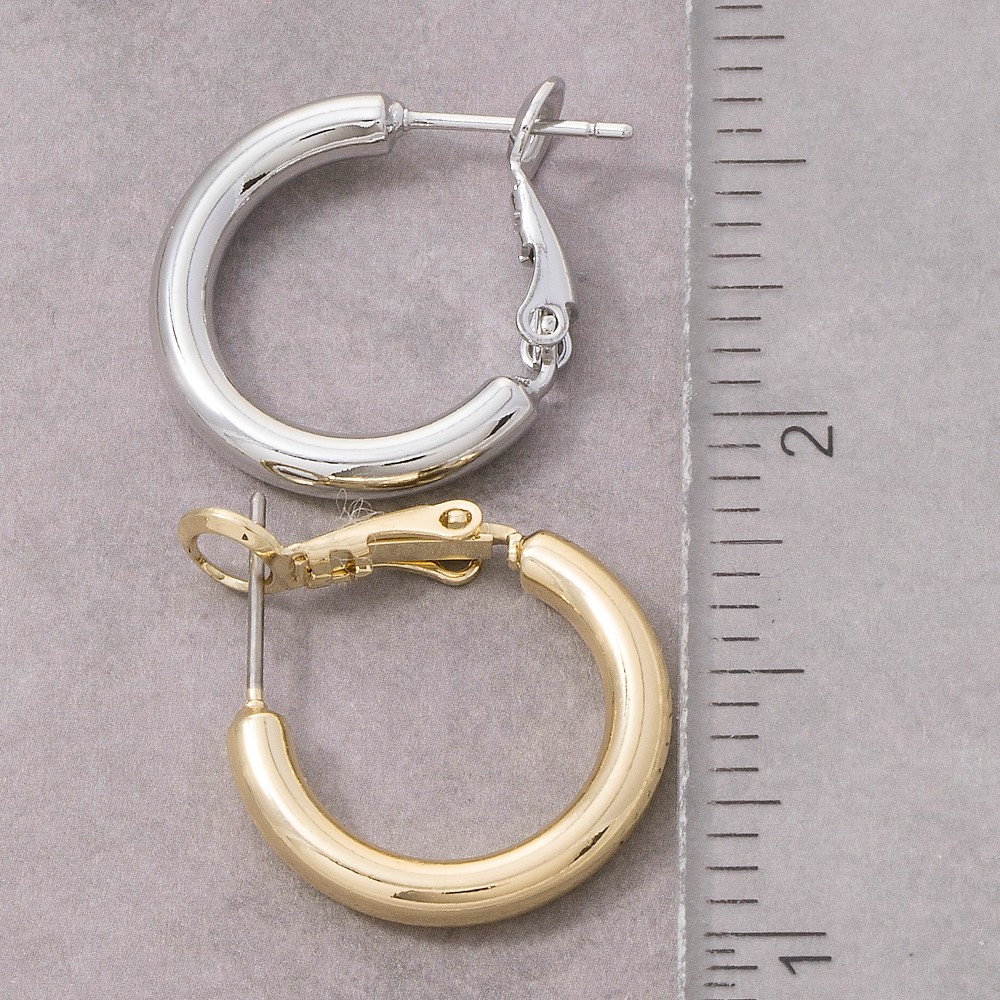 A versatile piece that can be dressed up or down, this pair of hoop earrings showcases a breathtaking small latch tube design. Perfect for adding a pop of color or texture to any outfit, this pair of hoop earrings is a must-have. Available in G, S. This item is sold in packs of 12.