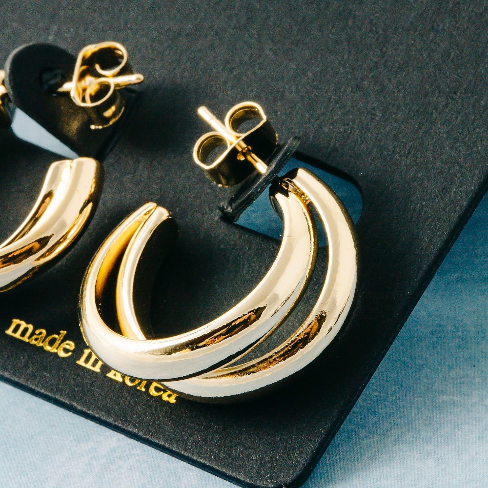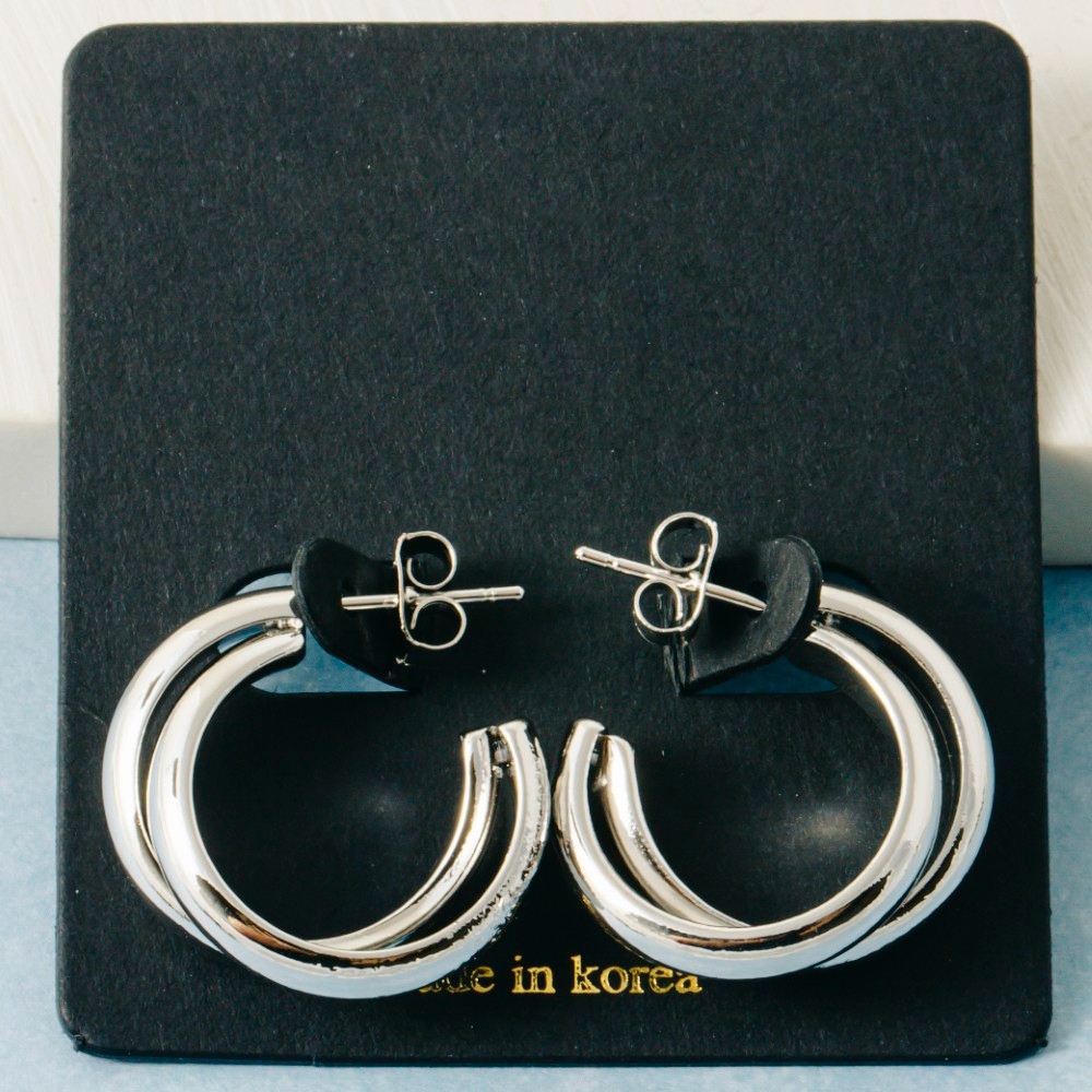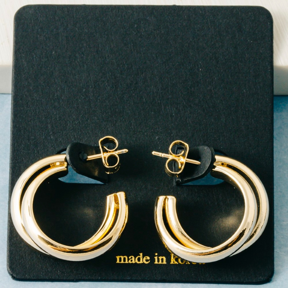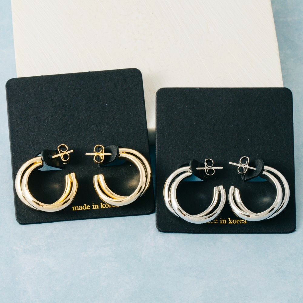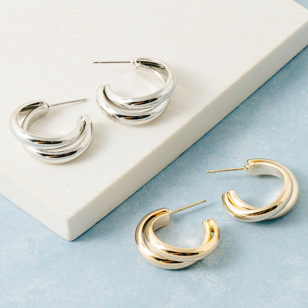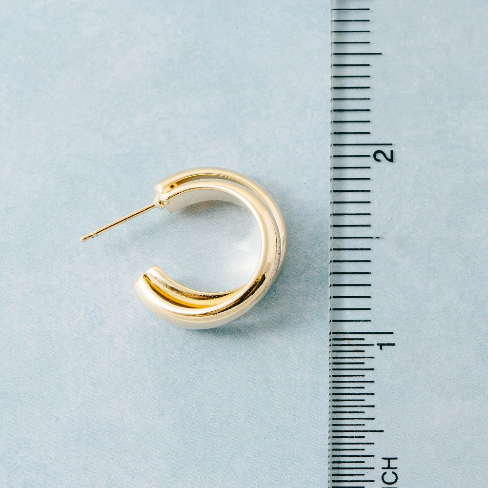 A modern classic, this pair of hoop earrings emanates an elegant solid layered curved design. Make a lasting impression with this versatile pair of hoop earrings, a subtle yet impactful addition to your fashion repertoire. Available in G, S. This item is sold in packs of 12.