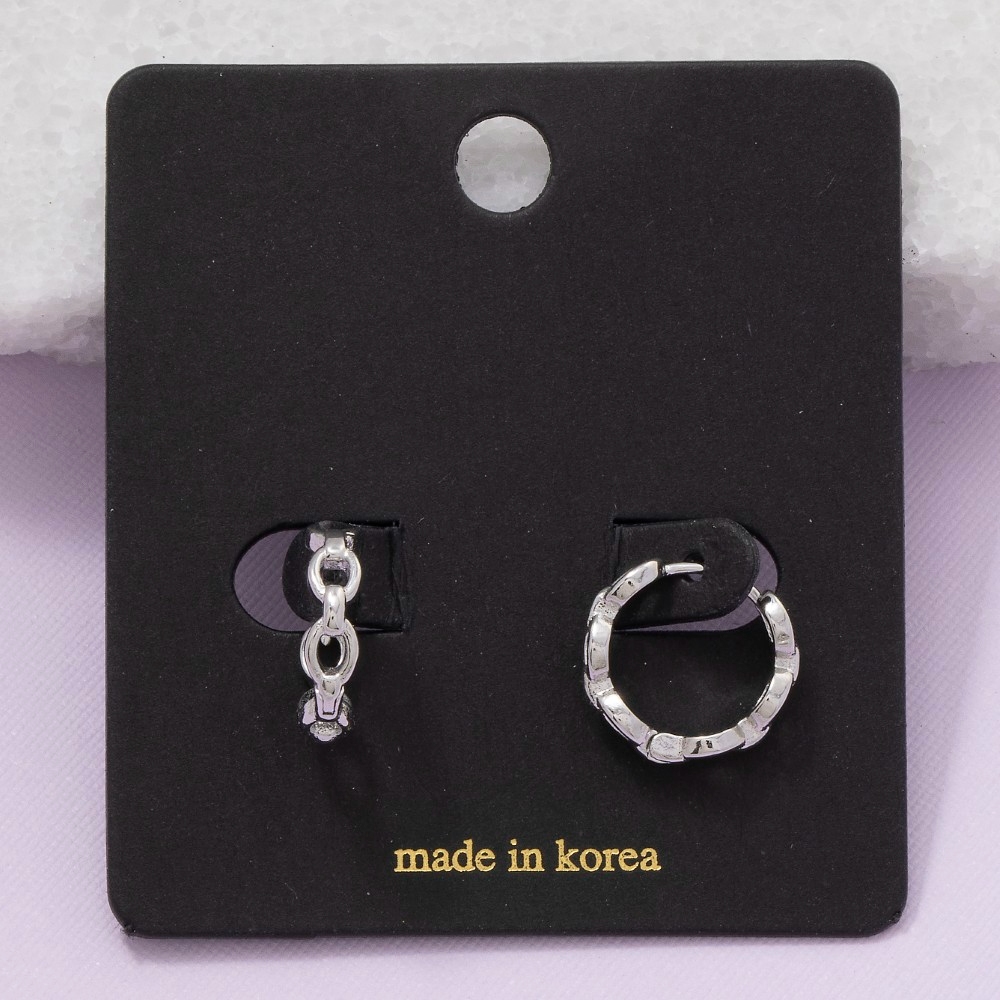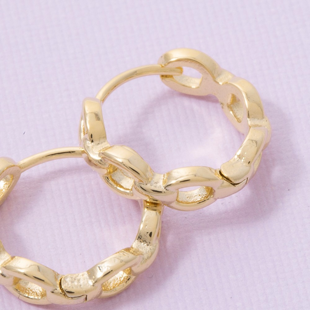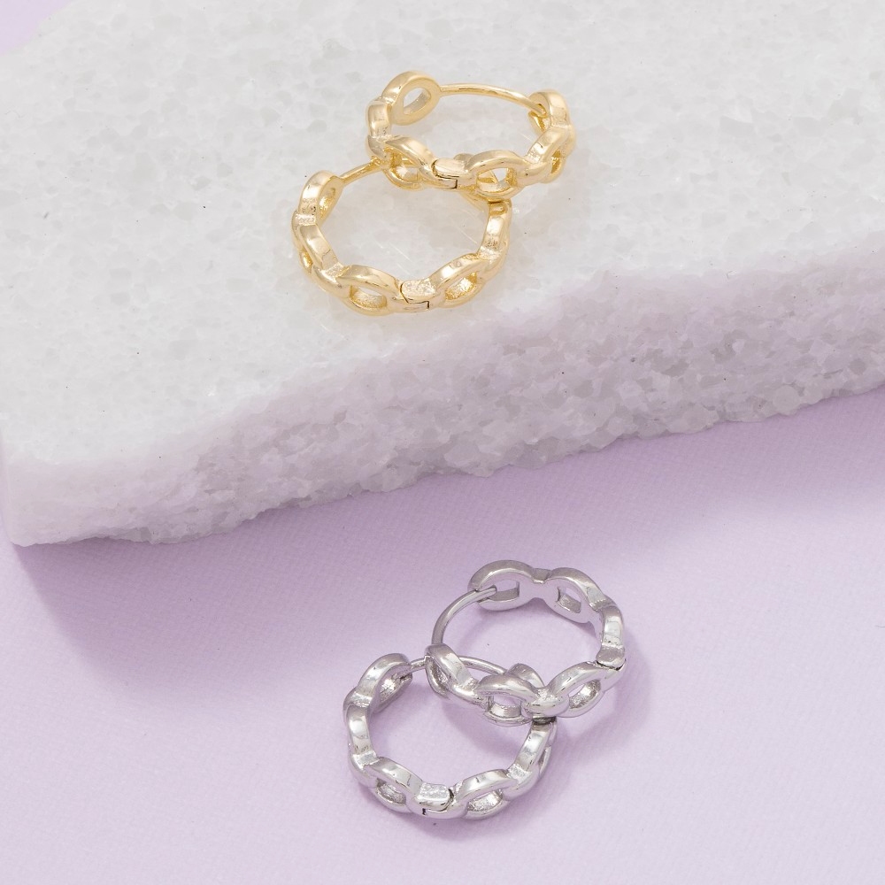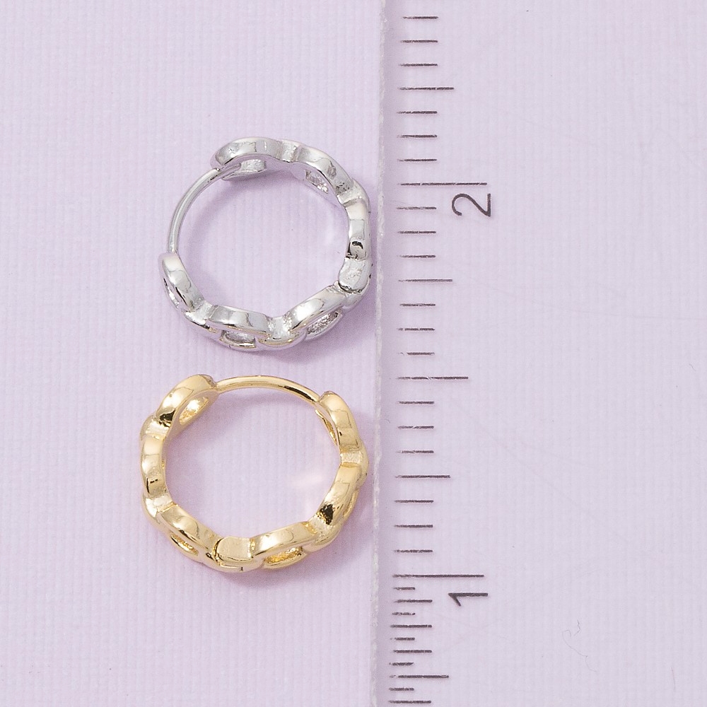 Perfect for any occasion, from casual to formal, this pair of hoop earrings incorporates a flawless solid mini chain hinge design. Elevate your fashion statement with this versatile pair of hoop earrings, adding a touch of glamour to your everyday look. Available in G, S. This item is sold in packs of 12.