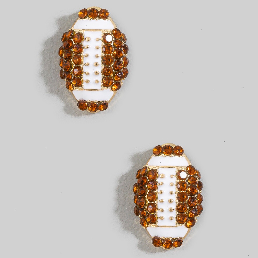 - Unleash your inner fashionista, this pair of stud earrings carries a charming studded mini football design. Add a dash of sophistication to your look with this versatile pair of stud earrings, a must-have for fashion enthusiasts. Available in BRG. This item is sold in packs of 1.
