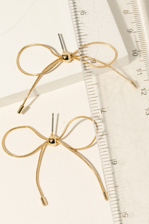 Solid Metallic Wire Ribbon Bow Stud Earrings