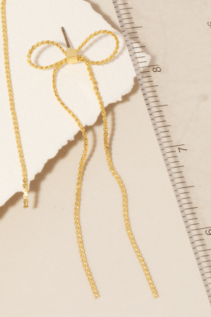 Dainty Metallic Chain Ribbon Bow Stud Earrings