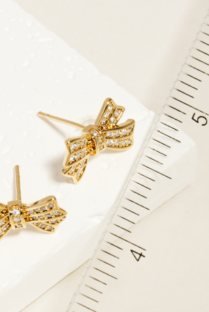 Cubic Zirconia Stud Ribbon Bow Stud Earrings