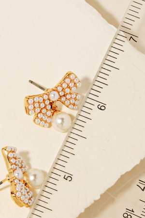 Rhinestone Ribbon Bow And Charm Stud Earrings