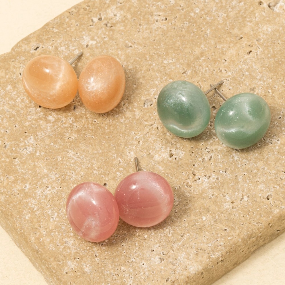 The epitome of sophistication and style, this pair of stud earrings boasts a magnificent 3 pair flattened acrylic ball design. Master the art of accessorizing with this versatile pair of stud earrings, a key element for achieving a chic and polished look. This item is sold in packs of 1.