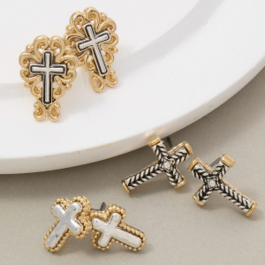 Vintage Metallic Cross Stud Earrings
