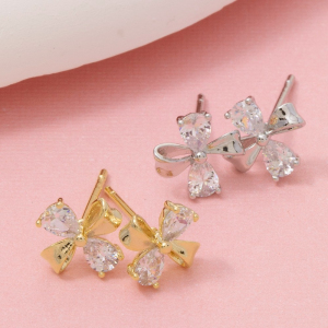 Cz Tear Studs Ribbon Bow Stud Earrings